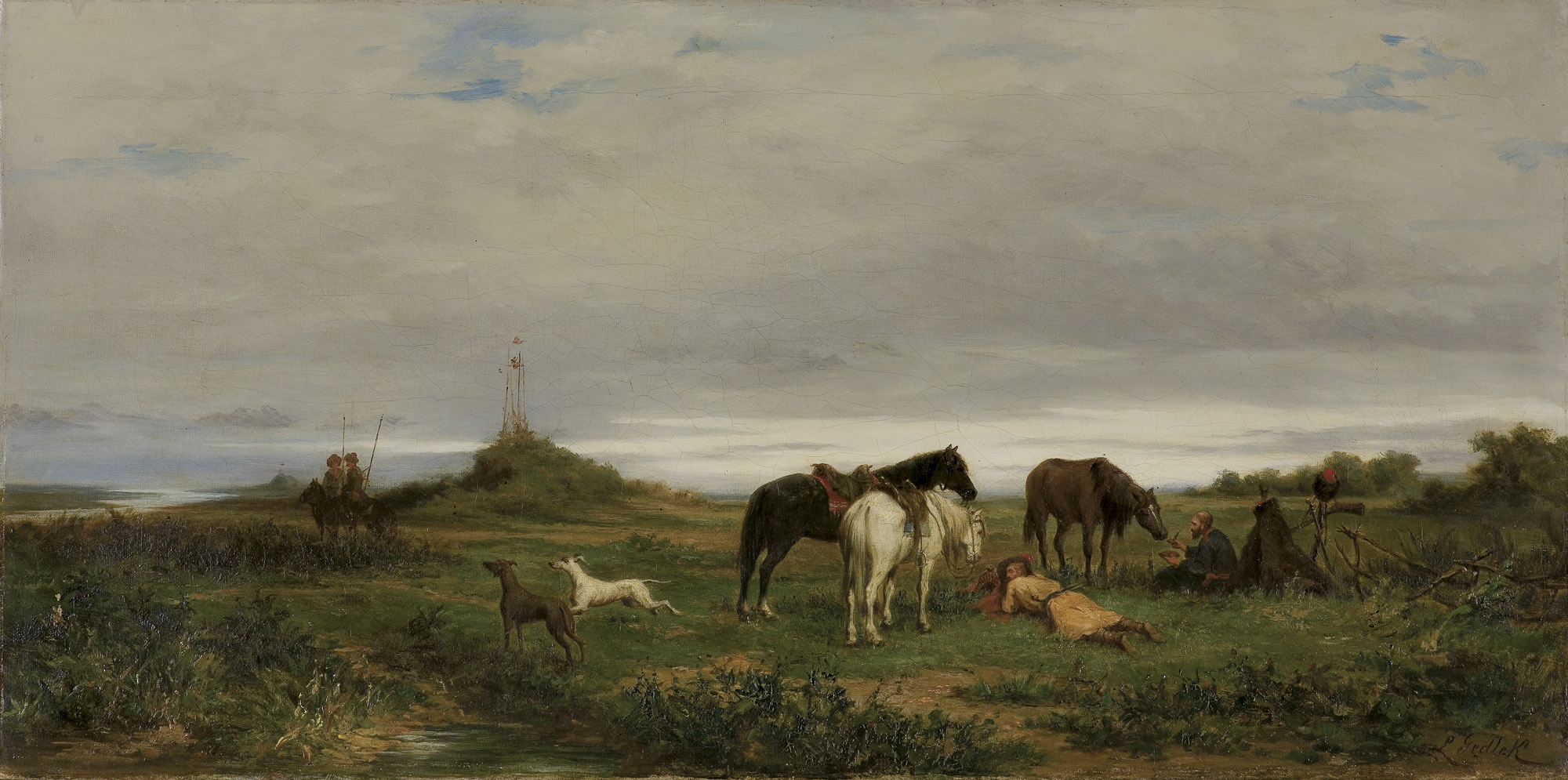 Ludwik Gędłek (Kraków 1847 - Wiedeń 1904) rozpoczął studia artystyczne w krakowskiej Szkole Sztuk Pięknych pod kierunkiem Władysława Łuszczkiewicza, a w latach 1872-1877 kontynuował je w Akademii wiedeńskiej u Eduarda Lichtenfelsa i Carla Wurzingera. Już w roku 1863 debiutował na wystawie w krakowskim TPSP, gdzie później wystawiał jeszcze kilkakrotnie. Stale mieszkał w Wiedniu, skąd wysyłał obrazy także na wystawy do TPSP we Lwowie, do Salonu Aleksandra Krywulta w Warszawie oraz do Drezna. Malował przede wszystkim sceny rodzajowe i batalistyczne z częstym motywem koni, a także krajobrazy, głównie z okolic Krakowa. Obrazy artysty znajdują się, m.in. w Muzeum Narodowym w Warszawie, Lwowskiej Galerii Obrazów i Polskim Muzeum w Chicago