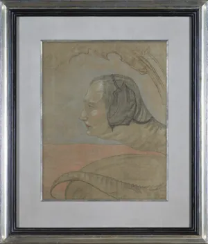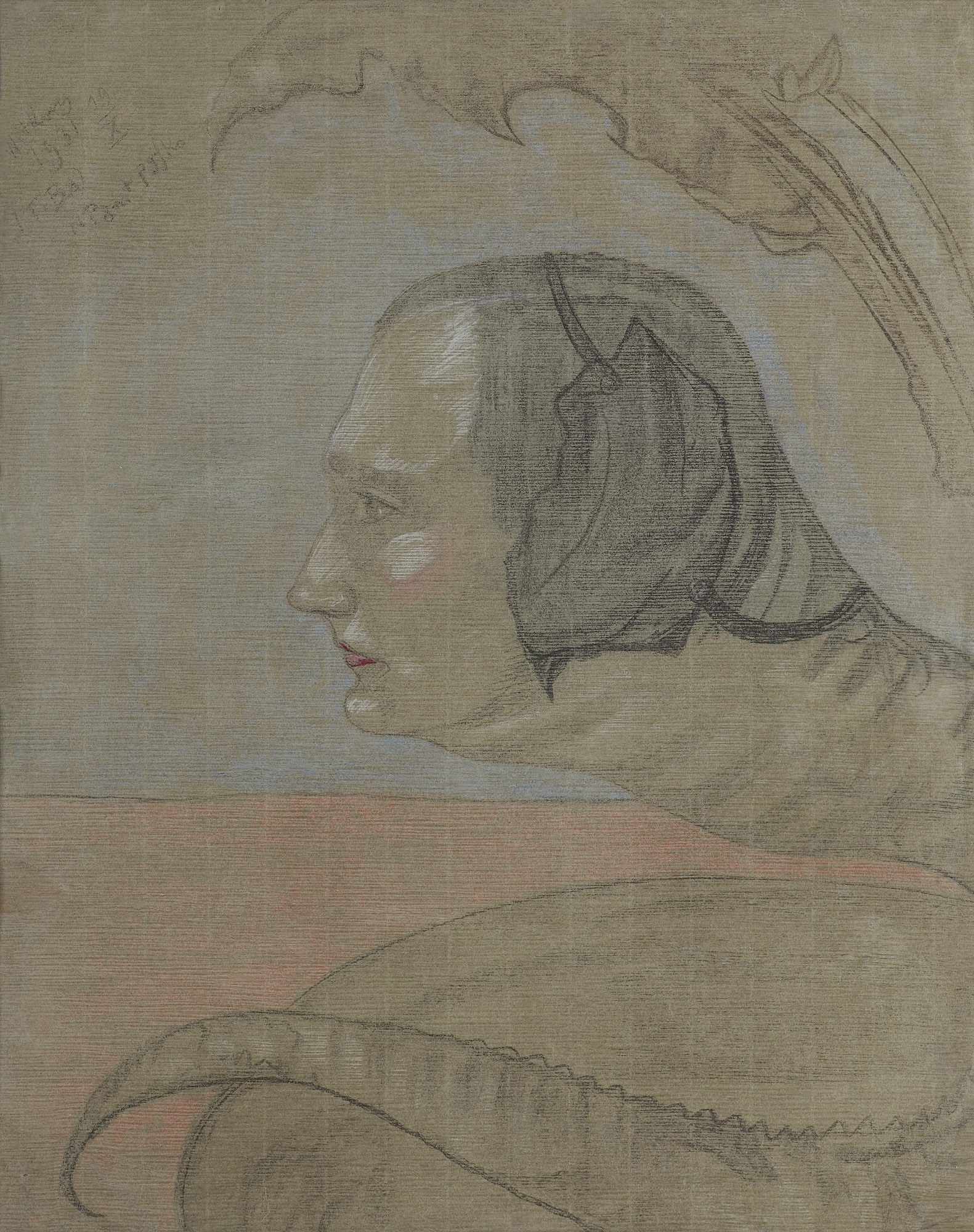 PORTRET MĘSKI - GŁOWA Z PROFILU Z OGONEM WĘŻA, WYŁANIAJĄCA SIĘ Z LIŚCI, 19 X 1931