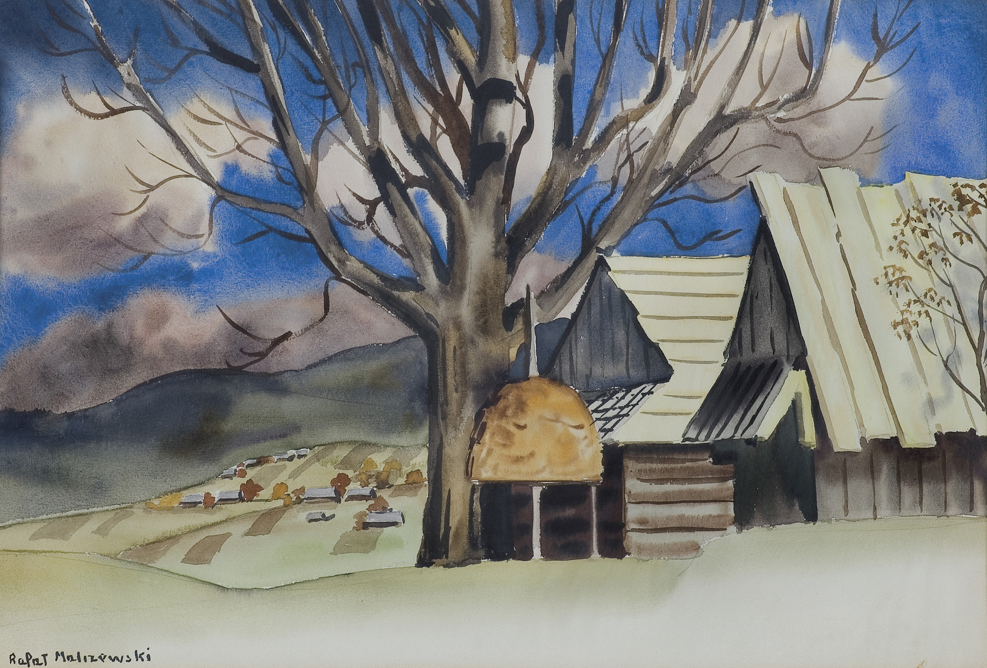 Rafał Malczewski (Kraków 1892 - Montreal 1965) studiował w Wiedniu agronomię, filozofię i architekturę; uczęszczał także do tamtejszej Akademii Sztuk Pięknych, ale edukację artystyczną zawdzięczał przede wszystkim ojcu, Jackowi Malczewskiemu. W latach 1917-1939 stale mieszkał w Zakopanem; był zamiłowanym taternikiem. W roku 1930 wyjechał na półroczny pobyt do Francji. W grudniu 1939 przez Słowację i Węgry przedarł się do Francji, skąd następnie wyjechał do Brazylii a później Stanów Zjednoczonych. W 1942 dotarł do Montrealu, gdzie pozostał na stałe. Począwszy od 1919 r. wiele wystawiał; od 1934 r. także jako członek ugrupowania „Rytm”. Malował przede wszystkim krajobrazy – z Tatr, Podhala, widoki z małych miasteczek i z fabrycznego Śląska, później także z Brazylii i Kanady. W swoich obrazach – świadomie prymityzowanych, utrzymanych często w poetyckim i bajkowym nastroju – bliski jest sztuce naiwnego realizmu. Malczewski był również literatem, autorem artykułów o sztuce, felietonów, esejów oraz wspomnień tatrzańskich i zakopiańskich, m.in. „Narkotyk gór”, „Góry wołają” czy „Pępek świata”, książką napisaną już w Kanadzie.