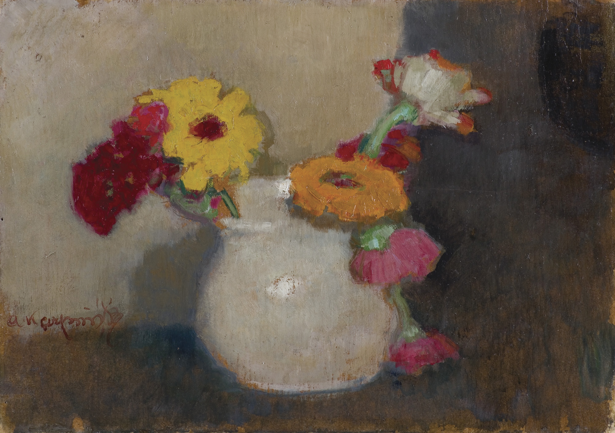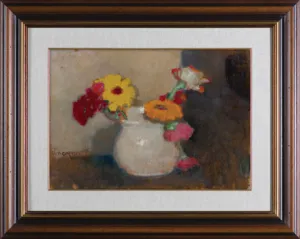Alfons Karpiński (Rozwadów, dziś dzielnica Stalowej Woli 1875 - Kraków 1961) w latach 1891-1899 studiował w krakowskiej Szkole Sztuk Pięknych pod kierunkiem Floriana Cynka, Izydora Jabłońskiego, Władysława Łuszczkiewicza i Leona Wyczółkowskiego, a następnie kształcił się jeszcze u Antona Ažbégo w Monachium (1903), u Kazimierza Pochwalskiego w Wiedniu, a od 1907 także w Paryżu. Podróżował do Włoch i Londynu. Stale mieszkał w Krakowie; związany z tamtejszym środowiskiem skupionym wokół „Zielonego Balonika” projektował dekoracje do przedstawień kabaretu. Należał do Tow. Artystów Polskich „Sztuka”, grupy „Zero”, był członkiem wiedeńskiego stowarzyszenia „Secesja” i krakowskiego TPSP. Uczestniczył w wielu wystawach w kraju i za granicą. W czasie I wojny światowej służył w armii austriackiej. Na bogatą twórczość artysty składają się wczesne sceny rodzajowe z podkrakowskiej wsi, pejzaże i portrety, wśród nich zwłaszcza portrety kobiece, które przyniosły mu szczególną popularność. Z czasem głównym – obok portretu – tematem jego obrazów stały się martwe natury z kwiatami, dekoracyjne kompozycje o stonowanej gamie barwnej. Artysta zajmował się także grafiką i ilustratorstwem.