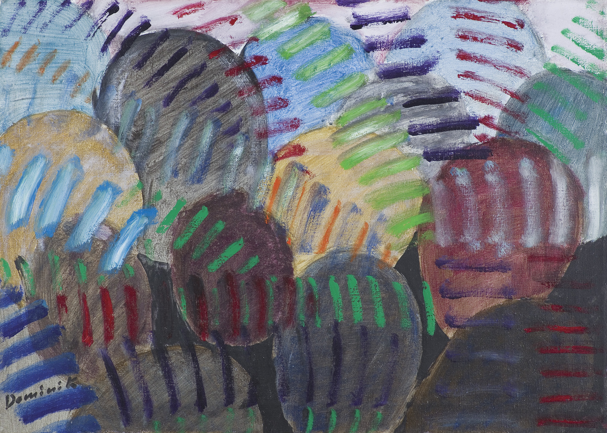 Tadeusz Dominik (Szymanów 14 I 1928 - Warszawa 20 V 2014) studiował na Wydziale Malarstwa ASP w Warszawie pod kierunkiem prof. J.Cybisa (1946-51, dyplom 1953). Od 1951 był pedagogiem na macierzystym Wydziale, początkowo jako asystent Cybisa. Od 1965 prowadził własną pracownię, w 1979 otrzymał tytuł profesora. W 1990 przeszedł na emeryturę. W czasie studiów oddziałały nań - za pośrednictwem osobowości i sztuki Cybisa - idee polskiego koloryzmu, które następnie twórczo i samodzielnie kontynuował. Początkowo tworzył obrazy figuratywne. Debiutował na słynnej wystawie w warszawskim Arsenale w 1955, gdzie zdobył nagrodę. W tym okresie obok malarstwa uprawiał drzeworyt, operujący szerokimi płaszczyznami bieli i czerni (drzeworyty wystawiał m.in. na Biennale w Wenecji w 1956). W drugiej poł. lat 50. zaczął malować obrazy abstrakcyjne, początkowo utrzymane w ekspresyjnej i spontanicznej stylistyce malarstwa informel. W latach 60. wzbogacił swe prace o efekty fakturowe. Niezmienną inspiracją była dla malarza natura, bogactwo i kolorystyka jej form. Pozostał jej wierny do dziś, poddając zmianom sam sposób malowania. Stopniowo rozjaśniał i wygładzał swe kompozycje, wprowadzając efekty dekoracyjne, jak rytmiczne powtórzenia form czy rodzaj malowanych „rastrów“, regularnie znaczących fragmenty kompozycji. Wśród wielu nagród otrzymał m.in. laur „Złotego Grona“ w Zielonej Górze w 1963, Grand Prix Festiwalu Polskiego Malarstwa Współczesnego w Szczecinie w 1968, nagrodę im. George’a Rowney’a w Londynie w 1973 i Nagrodę im. Jana Cybisa w Warszawie w 1973. Równolegle z malarstwem zajmował się gobelinem, ceramiką, również grafiką komputerową.