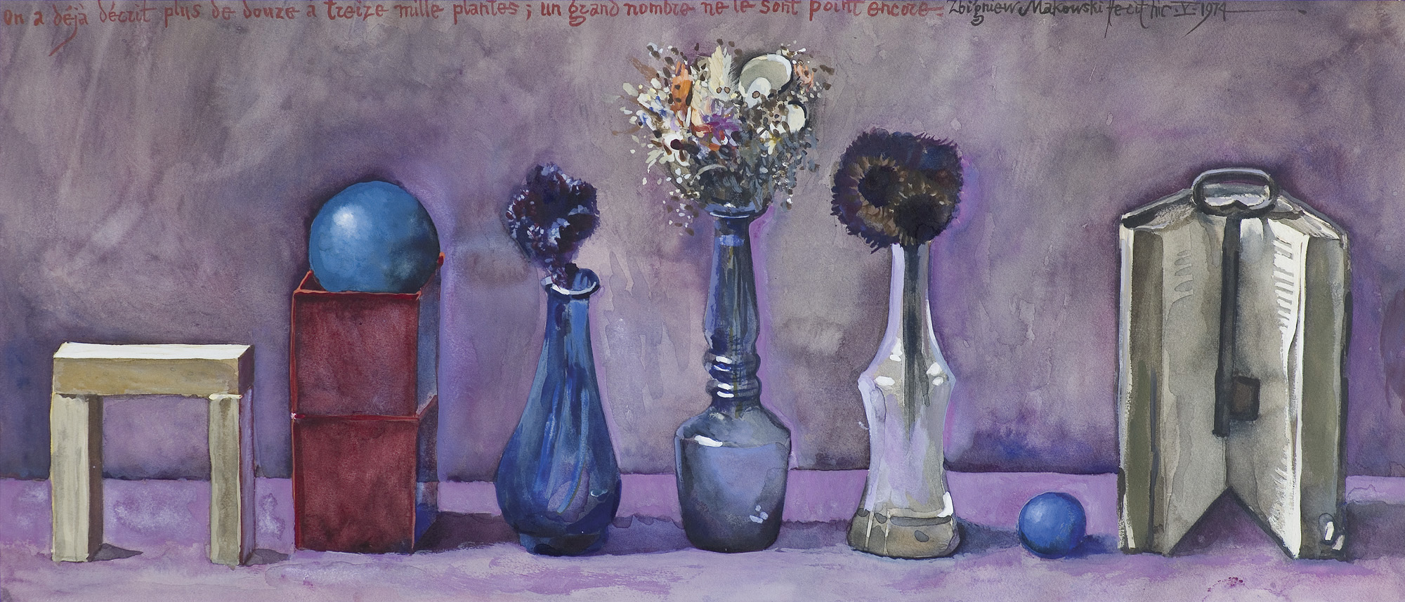 Zbigniew Makowski (Warszawa 31 I 1930 - Warszawa 19 VIII 2019) studiował w ASP w Warszawie w latach 1950-1956, dyplom uzyskał w pracowni Kazimierza Tomorowicza. Początkowo skłaniał się ku surrealizmowi - podczas pobytu w Paryżu w 1962 zetknął się z André Bretonem i międzynarodowym ruchem Phases. Jednak decydujący wpływ na wyraz jego sztuki wywarły pozamalarskie zainteresowania, jakim się oddaje. Jest literatem, poetą, erudytą, zwłaszcza zaś znawcą szerokiego spektrum filozofii i wiedzy tajemnej wielu kultur. Znawstwo to wykorzystuje w swoich pracach malarskich, rysunkowych, a także w unikatowych książkach, które własnoręcznie wykonuje na specjalnie preparowanych papierach. W swych pracach nawarstwia symbole, cytaty i znaczenia w nieczytelny, zdawałoby się, chaos. Wypada jednak wierzyć krytykom, którzy twierdzą, iż prace Makowskiego otwierają przed cierpliwym i intelektualnie przygotowanym „czytelnikiem“ świat swoistej narracji. Sam artysta zaś zwraca uwagę na „permutacyjną“ strukturę swych prac, w których rozmaite cytaty i odniesienia kulturowe przeplatają się z jego prywatną ikonografią. Tak czy inaczej, z pewnością w pracach Makowskiego da się wyróżnić pewien „alfabet“ wizualno-symboliczny, którego elementy pojawiają się w nich stale w różnych konfiguracjach. Należą doń np. takie wizerunki, jak klucz, drabina, studnia, mandala, kielich itp. Otaczają je napisy, często łacińskie, a także pojedyncze cyfry, litery, ornamenty. Określił je ktoś jako rebusy o wielkiej urodzie, które można odczytywać, można też kontemplować. Od roku 1982 artysta przestał wystawiać, ale nie tworzyć. Powstają wówczas prace będące rodzajem nowoczesnego notatnika, rozpoczętego jeszcze w latach 60., do którego artysta powraca z nowymi przemyśleniami. Artysta jest laureatem wielu nagród, m.in. Nagrody Krytyki Artystycznej im. Norwida (1973) i Nagrody im. Jana Cybisa (1992). Jego wielka kompozycja "Mirabilitas secundum diversos modos exire potest a rebus" (1973-1980) zdobi genewską siedzibę ONZ jako dar rządu polskiego.