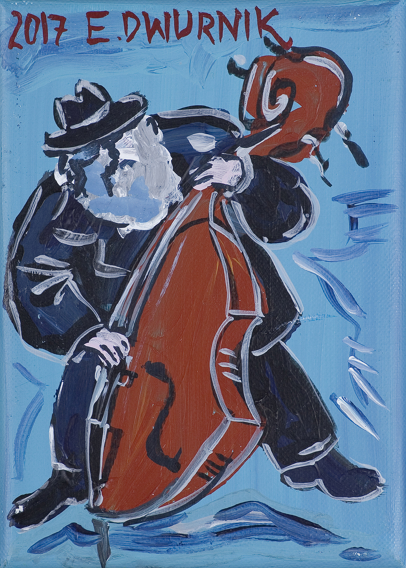 Edward Dwurnik (Radzymin 19 IV 1943 - Warszawa 28 X 2018) studiował malarstwo w ASP w Warszawie (1963-1970), jednak jako swego „mistrza“ wymienia Nikifora. Jego to prace, zobaczone po raz pierwszy w 1965, zainspirowały ówczesnego studenta III roku do narysowania pierwszych prac z cyklu „Podróże autostopem“, które kontynuował w nastepnych latach. W 1972-1978 powstawał cykl „Sportowcy“, w którym portretowane były, dodajmy - kąśliwie, typowe postaci z lat 70. Równolegle od 1975 powstawał cykl „Robotnicy“, który kulminował w okresie „Solidarności“ 1980-1981. Za prace z tego cyklu Dwurnik otrzymał w 1981 Nagrodę Krytyki Artystycznej im. Cypriana Kamila Norwida, natomiast za obrazy z cyklu „Warszawa“ (1981), proroczo zapowiadające stan wojenny - Nagrodę Kulturalną „Solidarności“ podziemnej w 1983. W latach 80. malarstwo Dwurnika przybrało wyraz ekspresyjny i dramatyczny. Powstające w tej dekadzie obrazy miały niejednokrotnie wymowę polityczną, przybierały też kostium historyczny, tak czy inaczej odnoszący się do współczesnych spraw i realiów. Cykl „Droga na Wschód“ (1989-91) upamiętniał ofiary stalinizmu, natomiast cykl „Od Grudnia do Czerwca“ (1990-94) - ofiary stanu wojennego. Zarówno ideowe, jak i czysto malarskie walory tych prac przyniosły artyście ogromne uznanie, zarówno w kraju jak i za granicą. Jego wyrazem była prestiżowa nagroda Fundacji Coutts & Co w Zurychu (1992). W latach 90. powstają cykle będące kontynuacją „Podróży autostopem“: „Niebieskie miasta“ (od 1993) i „Diagonale“ (od 1996), jak również kompozycje nowego typu, jak widoki morskie (cykl „Błękitne“, 1992-93) czy cykl „Wyliczanka“ (1996-99). Artysta wiele wystawia, miał ok. 100 wystaw indywidualnych w Polsce i za granicą, brał też udział w licznych wystawach i festiwalach krajowych i międzynarodowych, m.in.: X Biennale Sztuki Współczesnej, Menton 1974, Documenta 7, Kassel 1982, 5th Biennale, Sydney 1985, XIX Biennale Sztuki, Sao Paulo 1987; Olimpiada Sztuki, Seul 1988. Równolegle z malarstwem uprawiał rysunek, collage, grafikę warsztatową (litografia, techniki metalowe, kserografia, stemple) i użytkową (ilustracja, plakaty do własnych wystaw indywidualnych).