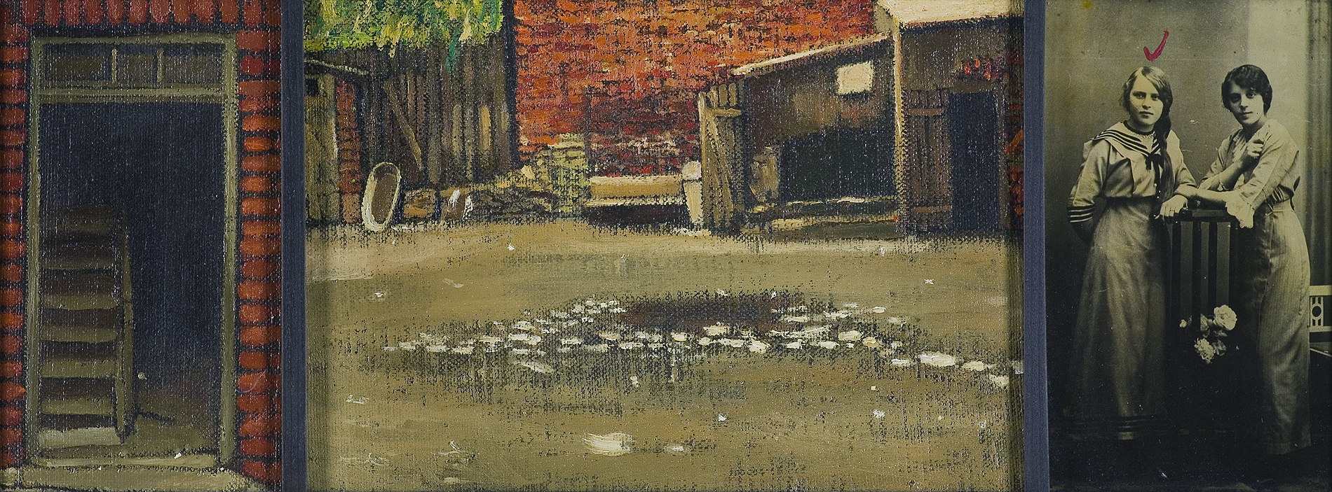 olej, płyta pilśniowa, collage