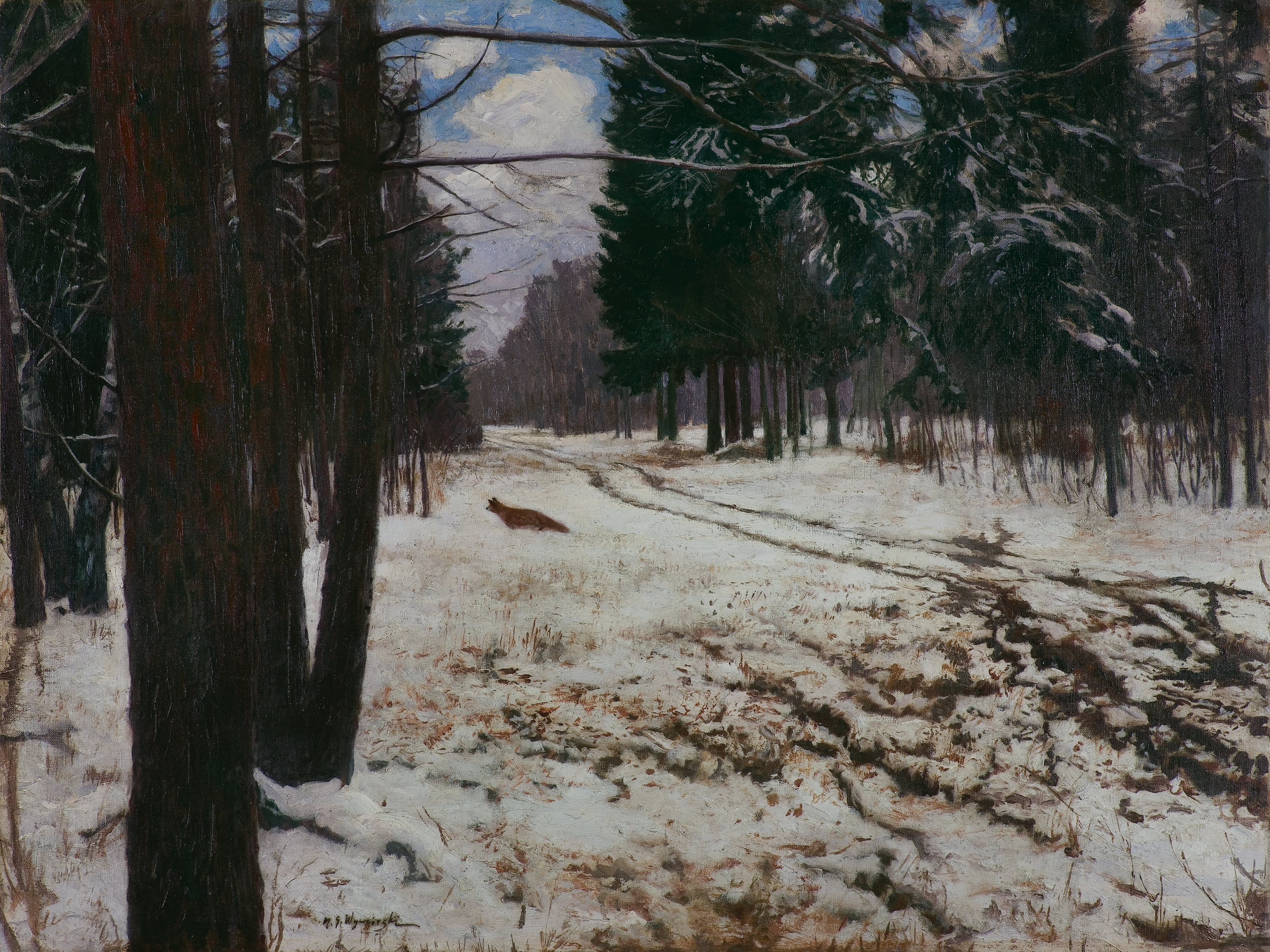 Michał Gorstkin Wywiórski (Warszawa 1861 - Berlin 1926) w latach 1883-1887 studiował w Monachium; w Akademii u profesorów Karla Raupa i Nikolausa Gysisa oraz równolegle w prywatnych pracowniach Józefa Brandta i Alfreda Wierusza-Kowalskiego. W 1884 debiutował na wystawie w krakowskim TPSP, swoje prace pokazywał też w Monachium, gdzie w 1894 na międzynarodowej wystawie w Glaspalast został wyróżniony medalem za obraz Z puszczy litewskiej. W 1895 przeniósł się do Berlina, zaproszony przez Wojciecha Kossaka i Juliana Fałata do pracy przy panoramie Berezyna (1895-1896). W Berlinie zamieszkał na dłużej, a następnie przebywał w Wielkopolsce i w Warszawie. Współpracował też z Janem Styką przy panoramie Bitwa pod Sybinem (1897), a w 1900 wspólnie z Kossakiem podróżował do Hiszpanii i Egiptu, aby wykonać szkice plenerowe do zamierzonych panoram Somosierra (nie zrealizowana) i Bitwa pod piramidami (1901). Wyjeżdżał także na Litwę, wyspę Sylt, do Norwegii, Szwecji, nad Morze Północne i Bałtyk, malował w Amsterdamie, na Krymie i Kaukazie. We wczesnej fazie twórczości, pod silnym wpływem Brandta i Wierusza-Kowalskiego, malował sceny myśliwskie i rodzajowe oraz obrazy z Tatarami, Kozakami czy Czerkiesami, które przyniosły mu powodzenie na monachijskim rynku sztuki. Z czasem naczelnym tematem jego malarstwa stał się czysty pejzaż, postrzegany i malowany wrażliwie i z upodobaniem.