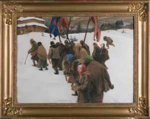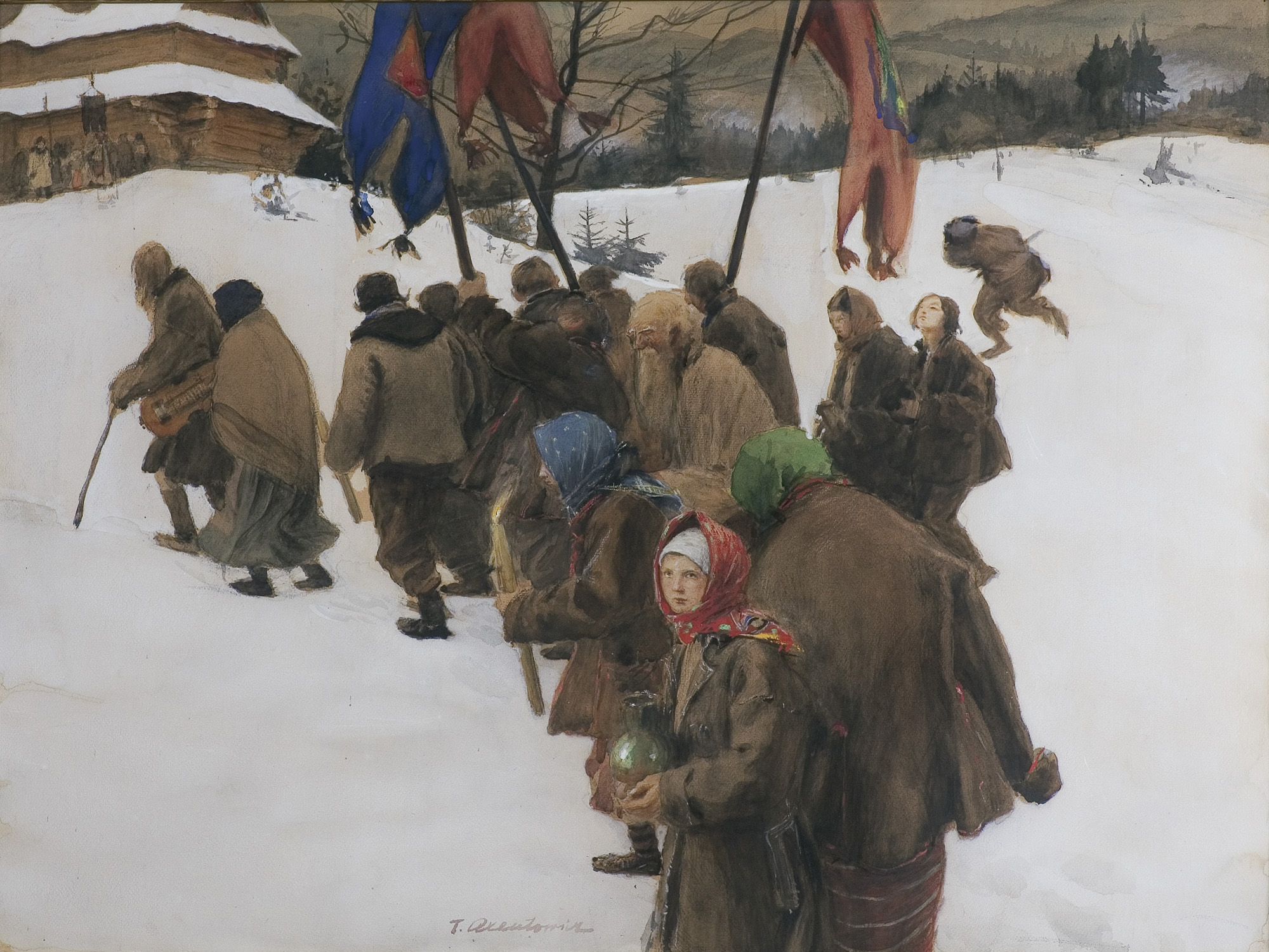 Teodor Axentowicz (Braszów w Siedmiogrodzie 1859 - Kraków 1938) – malarz, pastelista, litograf – był jednym z najbardziej znanych i cenionych malarzy polskich. Kształcił się w Akademii Sztuk Pięknych w Monachium pod kierunkiem Gabriela Hackla, Aleksandra Wagnera, Gyuli Benczúra. Studia uzupełniał w Paryżu, gdzie następnie przebywał przez lat kilkanaście. Brał udział w paryskich Salonach; w 1890 otrzymał członkostwo Société Nationale des Beaux-Arts. W tym czasie wielokrotnie wyjeżdżał również do Londynu. W 1895 powrócił do kraju i zamieszkał na stałe w Krakowie, powołany na profesora tamtejszej Szkoły Sztuk Pięknych (od 1900 Akademii). W uczelni tej nauczał nieprzerwanie do 1934, dwukrotnie pełniąc funkcję rektora (lata 1910-11 oraz 1927-28). Był jednym z członków-założycieli Towarzystwa Artystów Polskich „Sztuka”, członkiem wiedeńskiej „Secesji” i współpracownikiem jej pisma „Ver Sacrum”. Powodzenie przyniosły mu zwłaszcza idealizowane wizerunki wytwornych dam oraz wdzięczne portrety dziecięce. Malował też obrazy o tematyce rodzajowej; był jednym z pierwszych malarzy Huculszczyzny i Hucułów. Tworzył obrazy historyczne i kompozycje symboliczne związane z upływem czasu, przemijaniem, starością. We wczesnym, monachijskim okresie były to obrazy utrzymane w duchu akademickiego realizmu; na późniejszą twórczość artysty wywarło wpływ angielskie malarstwo XVIII w. oraz dzieła malarzy współczesnych - Boldoniego, Whistlera, Sargenta. Jego obrazy cechuje dekoracyjność, elegancja, świeżość subtelnej gamy kolorów i delikatna secesyjna stylizacja. Początkowo malował olejno i akwarelą, a po 1890 przede wszystkim mistrzowsko opanowaną techniką pastelu. Zajmował się ilustratorstwem i litografią, projektował plakaty wystaw „Sztuki”.