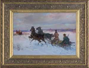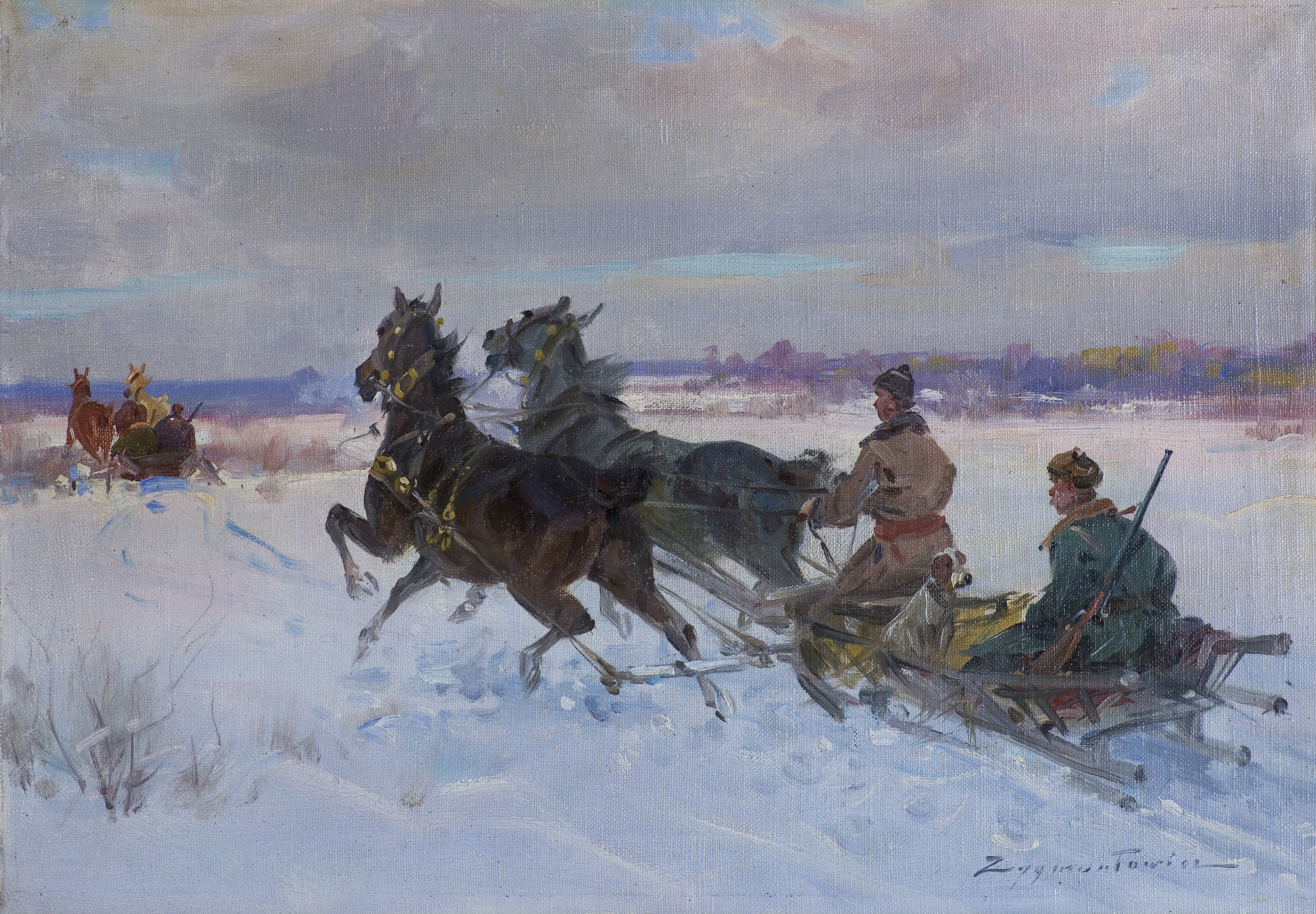 Czesław Wasilewski (ok. 1875 - Warszawa/ Łódź 1946?47) to popularny w okresie międzywojennym warszawski malarz, autor obrazów inspirowanych płótnami Kossaka, Brandta, Chełmońskiego, Wierusza-Kowalskiego czy Fałata. Był samoukiem; wprawdzie w 1911 zapisał się do warszawskiej Szkoły Sztuk Pięknych, ale o jego studiach nic bliższego nie wiadomo. Być może uczęszczał tam (1913-1917) do pracowni Wojciecha Kossaka, dla którego później, na początku lat dwudziestych, przygotowywał podmalówki do obrazów. Uczestniczył w wystawie w Lublinie (1922), wystawiał na Salonach warszawskiej Zachęty (1925,1926, 1927), w Katowicach (1926), Częstochowie (1927), Gdyni (1929), Kaliszu (1931), Poznaniu (1928, 1931). Malował przede wszystkim liczne zaprzęgi, sanny, wyjazdy na polowania, wypadki w podróży, ułanów na patrolu, łosie, sarny i dziki w lesie. Tworzył także nastrojowe pejzaże, wyraźnie inspirowane malarstwem J. Chełmońskiego Rzadziej malował także kwiaty i martwe natury. Utożsamiany z malarzem o nazwisku „Zygmuntowicz”, którego prace pojawiały się na rynku sztuki od trzydziestych lat XX wieku. Stawiany przed tym nazwiskiem inicjał I. lub F., sugerować może imię Ignacy lub Franciszek. Sylwetkę malarza bliżej omówił S. Bołdok w artykule Malarz o dwóch nazwiskach (Art and Business 1992, nr 7-8, s. 48-49).