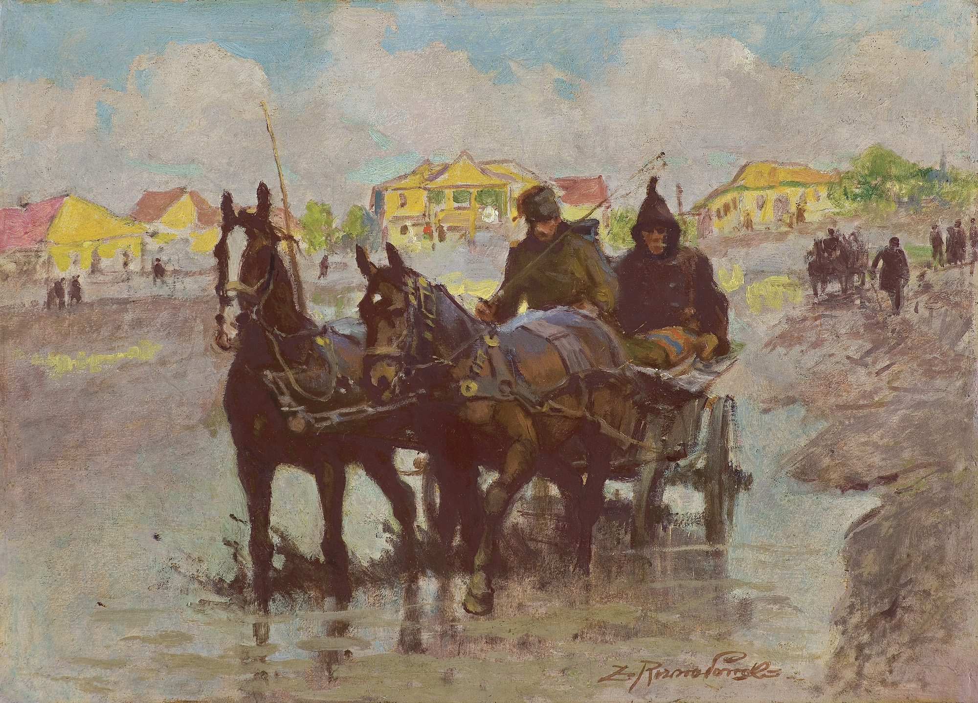 Zygmunt Rozwadowski (Lwów 1870 - Zakopane 1950) studiował od 1883 do 1890 w krakowskiej Szkole Sztuk Pięknych, m.in. u Jana Matejki, a w latach 1891-1893 w Monachium, w prywatnej szkole Antona Ažbégo. Jeszcze jako student debiutował w TPSP w Krakowie, wystawiając pod nazwiskiem Jordan. Po studiach mieszkał we Lwowie – nauczał w Szkole Przemysłowej, wiele wystawiał, współpracował przy dekoracji sal lwowskiego teatru. W czasie I wojny światowej walczył w Legionach. Po II wojnie zamieszkał w Zakopanem. Malował przede wszystkim obrazy batalistyczne z czasów napoleońskich i powstania listopadowego, sceny rodzajowe z motywami koni, rzadziej portrety i pejzaże. Uczestniczył w malowaniu popularnych panoram - Racławic z Janem Styką i Wojciechem Kossakiem, Golgoty, Panoramy siedmiogrodzkiej i Męczeństwa Chrześcijan ze Styką oraz Bitwy pod piramidami z Kossakiem. Wspólnie z Tadeuszem Popielem namalował dioramy Branki tatarskie i Bitwę pod Grunwaldem.