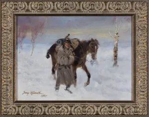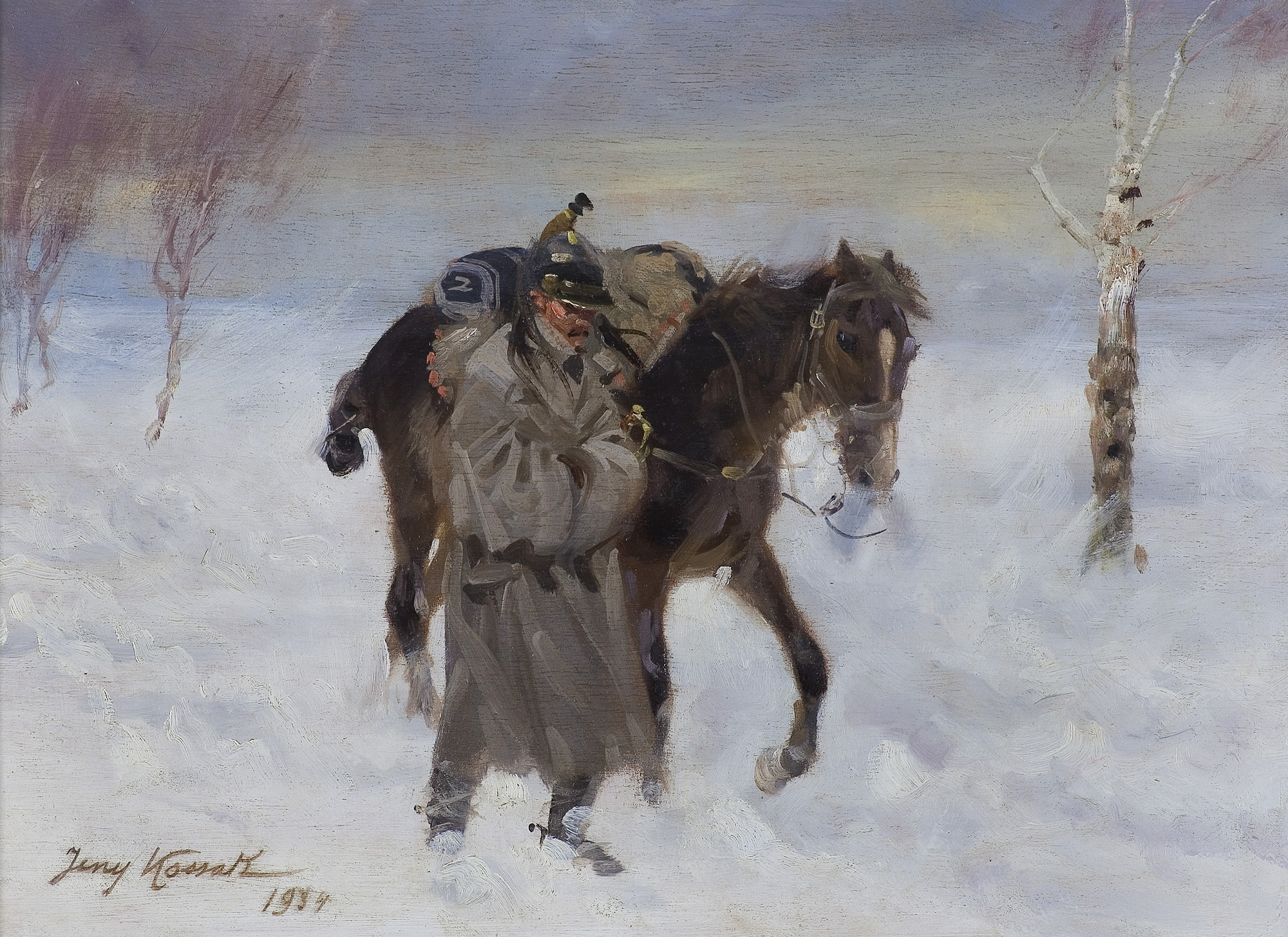 Jerzy Kossak (Kraków 1886 - Kraków 1955)- syn Wojciecha, wnuk Juliusza Kossaków - od wczesnego dzieciństwa malował pod kierunkiem ojca i dziadka. Kontynuator i naśladowca ich sztuki tworzył sceny batalistyczne, historyczne i rodzajowe z wszechobecnym motywem konia. Malował obrazy z powstania listopadowego, wojen napoleońskich oraz wiele scen z wojny 1920 roku. Najbardziej znaną jego kompozycją tego rodzaju był Cud nad Wisłą. Malował też liczne Pogonie i Pościgi ułanów za kozakami, Napady wilków, Polowania i Wesela. Tematyka tych prac sprawia, że stale cieszą się zainteresowaniem zbieraczy i publiczności, zawsze tłumnie odwiedzającej wystawy malarstwa Kossaków.