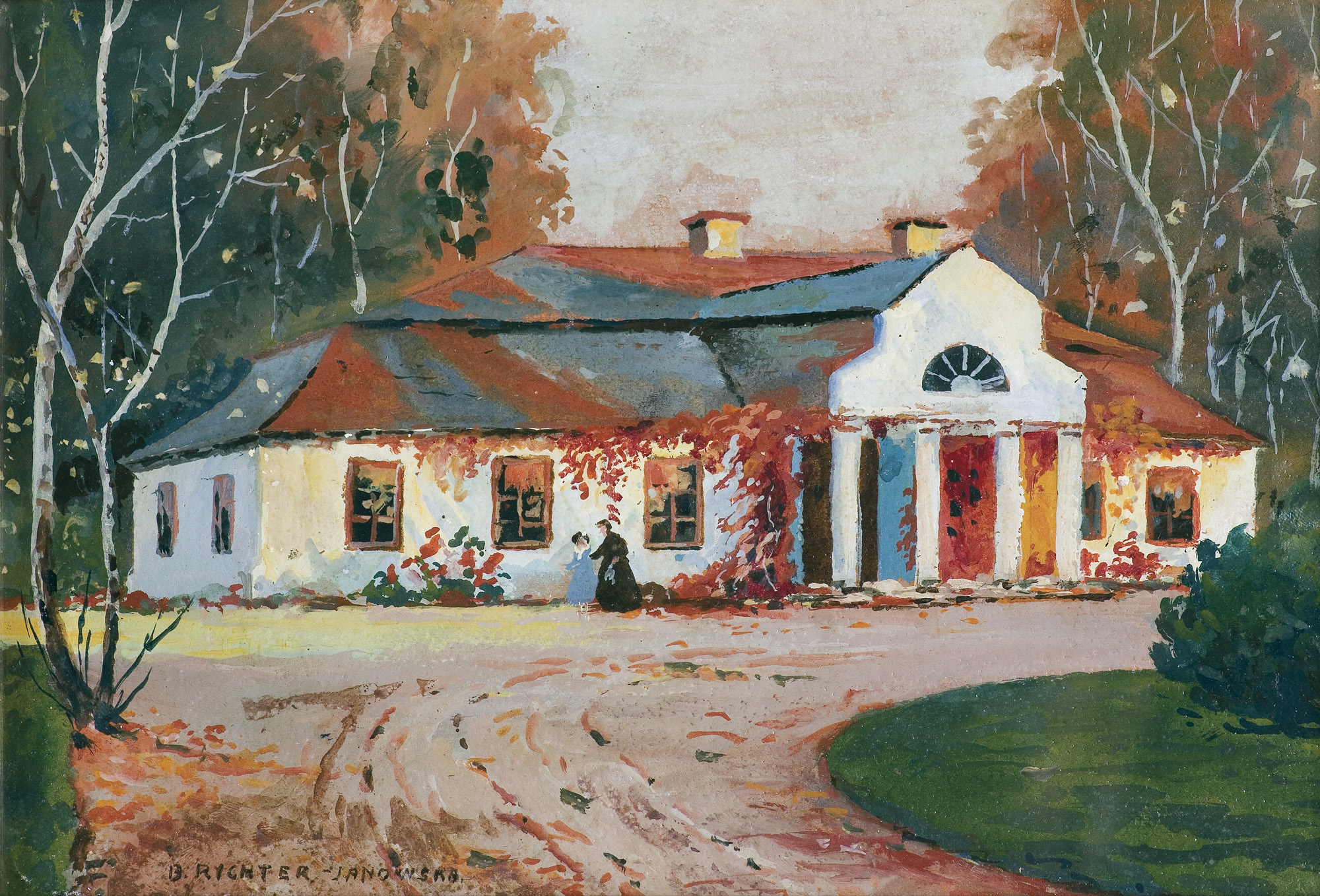 Bronisława Rychter-Janowska (Kraków 1868 - Kraków 1953) – artystka nazywana „malarką ginących polskich dworków”, naukę malarstwa rozpoczęła w Krakowie pod kierunkiem brata, malarza Stanisława Janowskiego oraz na kursach A. Baranieckiego. Prywatnych lekcji udzielał jej także Ludwik Boller (monachijski malarz, pracujący wówczas nad Panoramą Tatr). W 1896 wyjechała na dalsze studia do Monachium i uczyła się u Antona Ažbé’go i Szymona Hollósy’ego. Wiele podróżowała, wyjeżdżając jeszcze na Węgry i do Włoch, gdzie studiowała jeszcze w Akademii florenckiej i w Rzymie. Początkowo związana z Krakowem, ok. 1906 zamieszkała w Starym Sączu, gdzie przez pewien czas prowadziła prywatną szkołę malarstwa. W 1917 wróciła do Krakowa. Nadal dużo podróżowała, wyjeżdżając „w poszukiwaniu piękna” do Włoch, północnej Afryki czy Turcji. Malowała olejno, akwarelą, pastelem, wykonywała makaty i aplikacje. Począwszy od 1901 wielokrotnie pokazywała swoje prace na wystawach w Krakowie, Warszawie, we Lwowie , Pradze, Wiedniu, Rzymie, Wenecji, Florencji. Malowała liczne pejzaże (w tym wiele włoskich), widoki i wnętrza dworów czy kościołów, sceny z życia wsi, a także portrety. Zajmowała się publicystyką i twórczością literacką (m.in. powieść Poza Rzymem, nowela Strzygoń); była autorką kilku dramatów (Mnich, Pasożyt) i obszernych Pamiętników. Była żoną malarza Tadeusza Rychtera, szwagierką Gabrieli Zapolskiej.