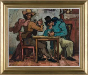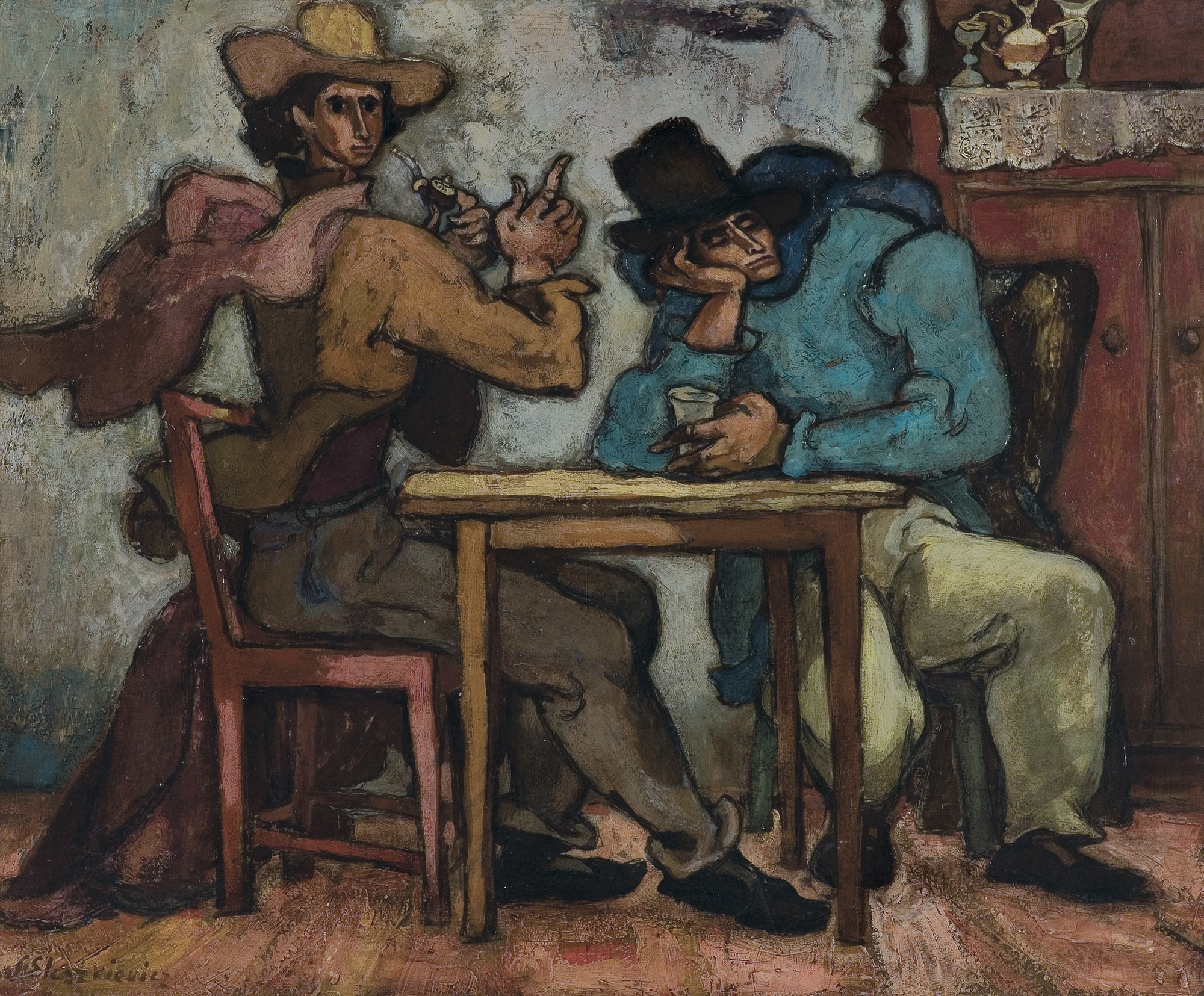 Stanisław Eleszkiewicz (Czutowo k. Połtawy 1900 - Paryż 1963) - malarz, rysownik, projektant mozajek i witraży - od roku 1914 uczył się w Szkole Sztuk Pięknych w Mirgorodzie. W 1918 wstąpił do wojska, a ciężko ranny przez pół roku przebywał w szpitalu. W latach 1919-1921 studiował w Szkole Sztuk Pięknych w Atenach. Następnie był w Neapolu i w Rzymie, a w roku 1923 zamieszkał na stałe w Paryżu i wielokrotnie wystawiał w paryskich galeriach. Malował olejno, gwaszem i temperą, chętnie używał też pasteli. Tworzył ekspresyjne sceny rodzajowe, portrety i pejzaże. Wiele prac artysty znajduje się w zbiorach prywatnych w Paryżu i w Stanach Zjednoczonych.