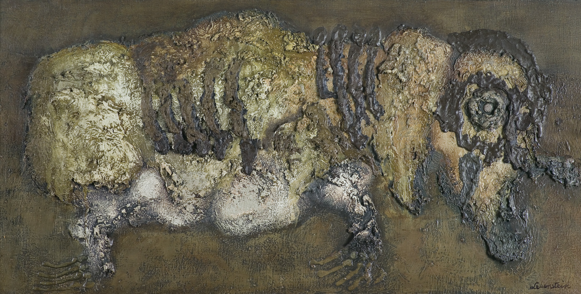 Jan Lebenstein (Brześć Litewski 1930 - Kraków 1999) w latach 1948-1954 studiował malarstwo w ASP w Warszawie pod kierunkiem prof. Eugeniusza Eibischa i Artura Nachta-Samborskiego. W 1955 wziął udział w wystawie w warszawskim Arsenale. Zaprzyjaźniony w czasie studiów z Mironem Białoszewskim, swą pierwszą wystawę indywidualną pokazał w 1956 w Teatrze na Tarczyńskiej. W 1959 zdobył Grand Prix de la Ville de Paris na I Biennale Młodych w Paryżu i w tym roku przeniósł się na stałe do Paryża. Po seriach "figur kreślonych" (na papierze milimetrowym) i "figur hieratycznych" z lat 1955-1958 maluje cykl "figur osiowych" (1958-1962), które wystawia w Paryżu i USA. Równolegle w 1960 zaczyna rysowane "karnety", rodzaj dziennika, który w przyszłości dostarczy motywów wykorzystanych w obrazach. W latach 1964-1965 maluje "Bestiarium", cykl fakturowych, archaizowanych stworów przypominających prehistoryczne wykopaliska. Bezpośrednio po nich wprowadza do swych obrazów postaci ludzkie i fantastyczne, odgrywające sceny ni to mitologiczne, ni to ze snu, często przesycone erotyką. W 1970 projektuje witraże dla Centre du Dialogue w Paryżu. W W 1971 otrzymuje obywatelstwo francuskie 1974 powstają gwasze inspirowane Folwarkiem zwierzęcym George'a Orwella. W latach 1976-1989 tworzy wyłącznie w technice gwaszu i pastelu, podejmując tematykę mitologiczną i zaczerpniętą z Biblii: cykle ilustracji do Księgi Hioba (wyd. 1979) i do Apokalipsy (wyd. 1986) w nowych przekładach Czesława Miłosza. W 1989 powraca do malarstwa olejnego (cykl "Pergamon"). Artysta otrzymał m. in. nagrodę Fundacji im. Alfreda Jurzykowskiego w 1976, Nagrodę Muzeum Archidiecezji Warszawskiej w 1985, Nagrodę im. Jana Cybisa w 1987.