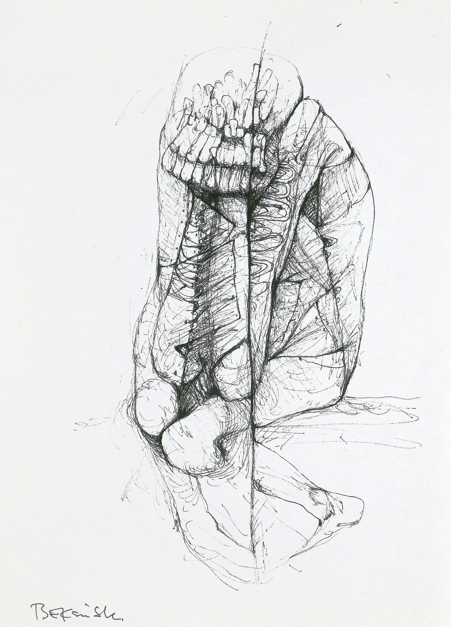 Zdzisław Beksiński (Sanok 24 II 1929 - Warszawa 21 II 2005) studiował w latach 1947-1952 na Wydziale Architektury Politechniki Krakowskiej. Był artystą samoukiem, który osiągnął niekwestionowaną pozycję w polskiej sztuce współczesnej, potwierdzoną obecnością jego prac na prestiżowych wystawach i w kolekcjach muzealnych. Początkowo zajmował się fotografią, którą interesował się od lat studenckich, po 1956 zyskując uznanie jako twórca fotogramów o estetyce opartej o efekty fakturowe. W latach 1958-1962 tworzył abstrakcyjne obrazy-reliefy o bogatej fakturze, głównie metalowe, będące odmianą malarstwa materii. Pod koniec tego okresu powstawały ażurowe formy o kształtach figur i pełnoplastyczne rzeźby w metalu. Kolejnym etapem jego twórczości były lata 1962-1974, kiedy poświęcał się głównie rysunkowi. W latach 60. rysował piórkiem i tuszem figuralne kompozycje odznaczające się karykaturalną deformacją postaci. Od końca lat 60. tworzył rysunki węglem i kredkami, będące monochromatyczną odmianą jego równoległej twórczości malarskiej. Od 1974 zajmował się niemal niepodzielnie malarstwem. Jego charakterystyczny styl bazował na perfekcji technicznej, której towarzyszyła niezwykłość wizji. Malował świat po katastrofie, naznaczony piętnem śmierci i rozpadu. Jego obrazy zaludniają postaci i stwory o ludzkich wprawdzie bądź zwierzęcych kształtach, lecz o cechach fantomów, automatów lub rozpadających się trucheł. Artysta nie nadawał swym obrazom i rysunkom tytułów (poza porządkującymi symbolami), akcentując w ten sposób swój brak zainteresowania dla literackiej strony przedstawień. Sam mówił, że malując całkowicie poddaje się wizji, „fotografuje“ ją. W ostatnich latach włączył do swego warsztatu artystycznego elektroniczne techniki generowania obrazu, które wykorzystywał do tworzenia komputerowych fotomontaży. Sztuka Beksińskiego, wielokrotnie wystawiana i omawiana, budzi skrajne emocje wśród znawców i publiczności.