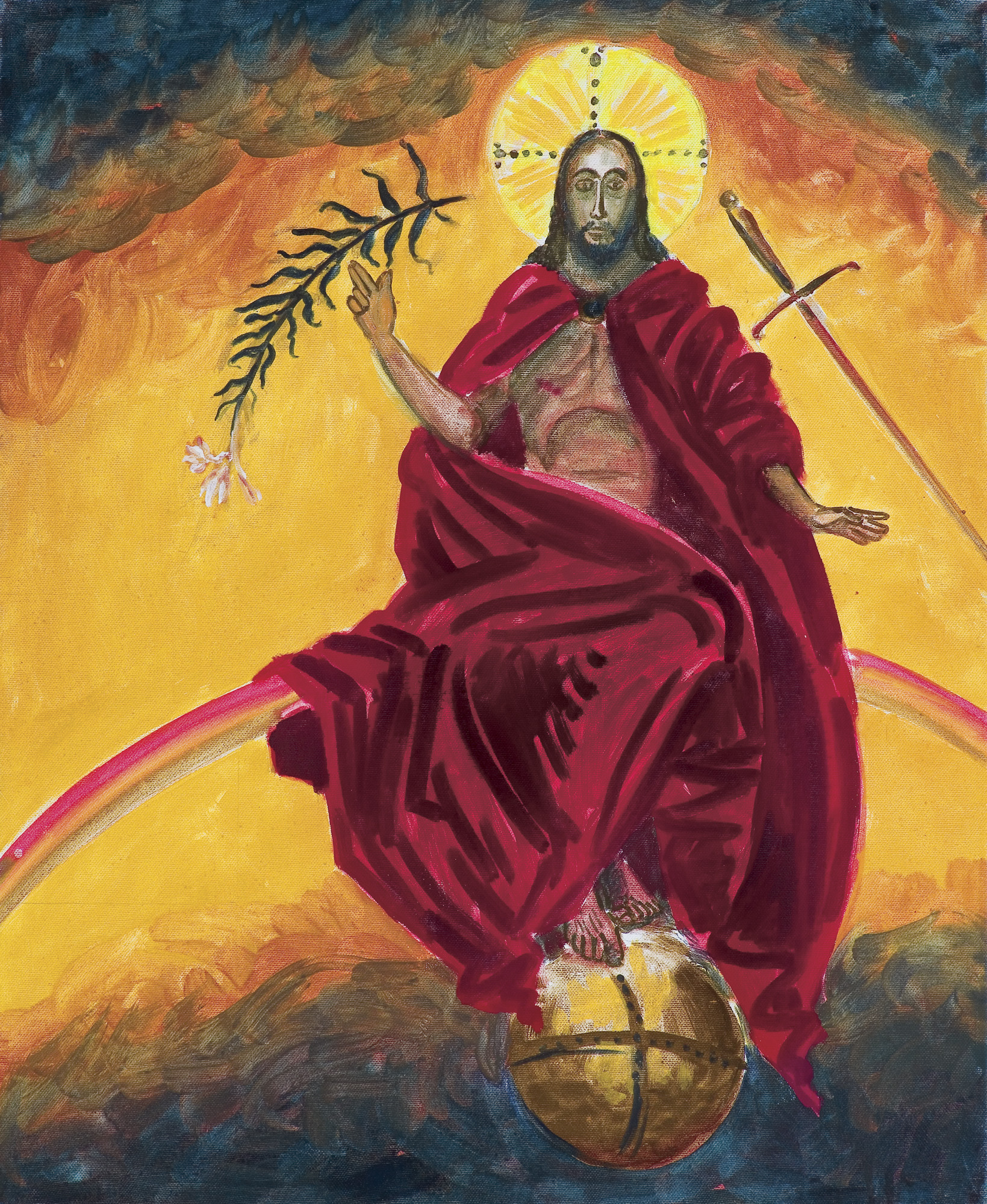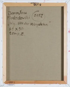 Jarosław Modzelewski (Warszawa 1955, mieszka w Warszawie) studiował malarstwo w ASP w Warszawie w latach 1975-1980, uzyskując dyplom w pracowni Stefana Gierowskiego. Od 1982 pracuje jako pedagog na macierzystym wydziale. W 1982 był współzałożycielem „Gruppy”, najważniejszego ugrupowania nurtu nowej ekspresji lat 80., działającego do 1992. W latach 1991-1996 wspólnie z Markiem Sobczykiem prowadził prywatną Szkołę Sztuki w Warszawie. Od wielu lat współpracuje z Galerią Zderzak w Krakowie. W początkowym okresie twórczości skłaniał się ku abstrakcji, wykorzystywał uproszczone znaki i emblematy oraz sylwetki odbite z szablonu. W 1985 namalował cykl oparty na ilustracjach do podręczników języka rosyjskiego, obrazujący proste czynności, których czasownikowe określenia stanowią tytuły prac. W 1986-1989 powstawały obrazy utrzymane w konwencji realistycznej, jednak zarazem o surrealnej atmosferze uzyskiwanej różnymi metodami, np. przez dublowanie figur, ukazywanie postaci w sytuacji niepewności czy zagrożenia, zabiegi z przestrzenią. W grupie obrazów z 1988 artysta rezygnuje z postaci ludzkiej na rzecz wyjątkowego nasycenia emocją samej przestrzeni pejzaży i wnętrz. Około 1990 wraca do kompozycji akcentujących czynności wykonywane przez postaci, które często umieszczone są w pustej, zaledwie zasugerowanej, acz dominującej przestrzeni. Odrealnienia i monumentalności dodaje tym obrazom płaskie i rozległe kładzenie koloru.