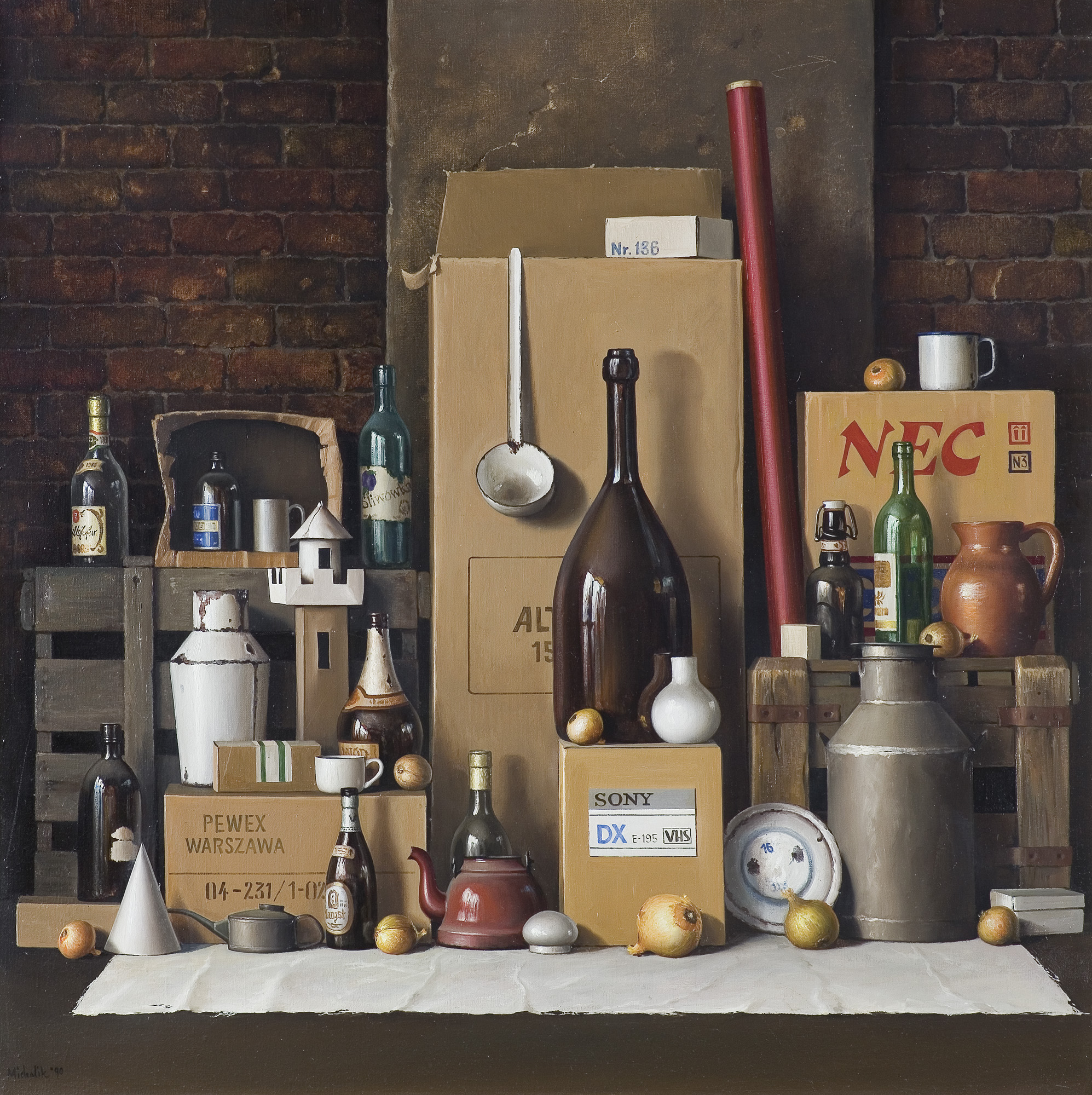 Marian Michalik (Zabrze 1947 - Częstochowa 1997) - był absolwentem Liceum Sztuk Plastycznych w Częstochowie. Po jego ukończeniu w 1966 zajmował się grafiką użytkową. Kilka lat później zwrócił się ku malarstwu, w którym doskonalił się samodzielnie. W 1979 został przyjęty do Związku Polskich Artystów Plastyków. Od tego czasu intensywnie wystawiał w kraju i za granicą, uzyskując wiele nagród na krajowych i miedzynarodowych konkursach, m.in. złoty medal na „Bielskiej Jesieni“ w 1980, wyróżnienie na XV Grand Prix d'Art Contemporain, Monte Carlo 1981, nagroda na Międzynarodowym Biennale Malarstwa, Koszyce 1985. W 1987 został członkiem Europejskiej Akademii Sztuki, Nauki I Literatury w Paryżu. Tworzył w konwencji magicznego realizmu, precyzyjnie odtwarzając banalne przedmioty codziennego użytku, różne narzędzia, płody natury itp., a następnie tworząc ich niezwykłe zestawienia. Stosując ciemną kolorystykę i efekty świetlne nawiązywał do historycznego malarstwa mistrzów holenderskich martwych natur.