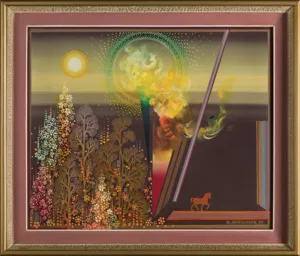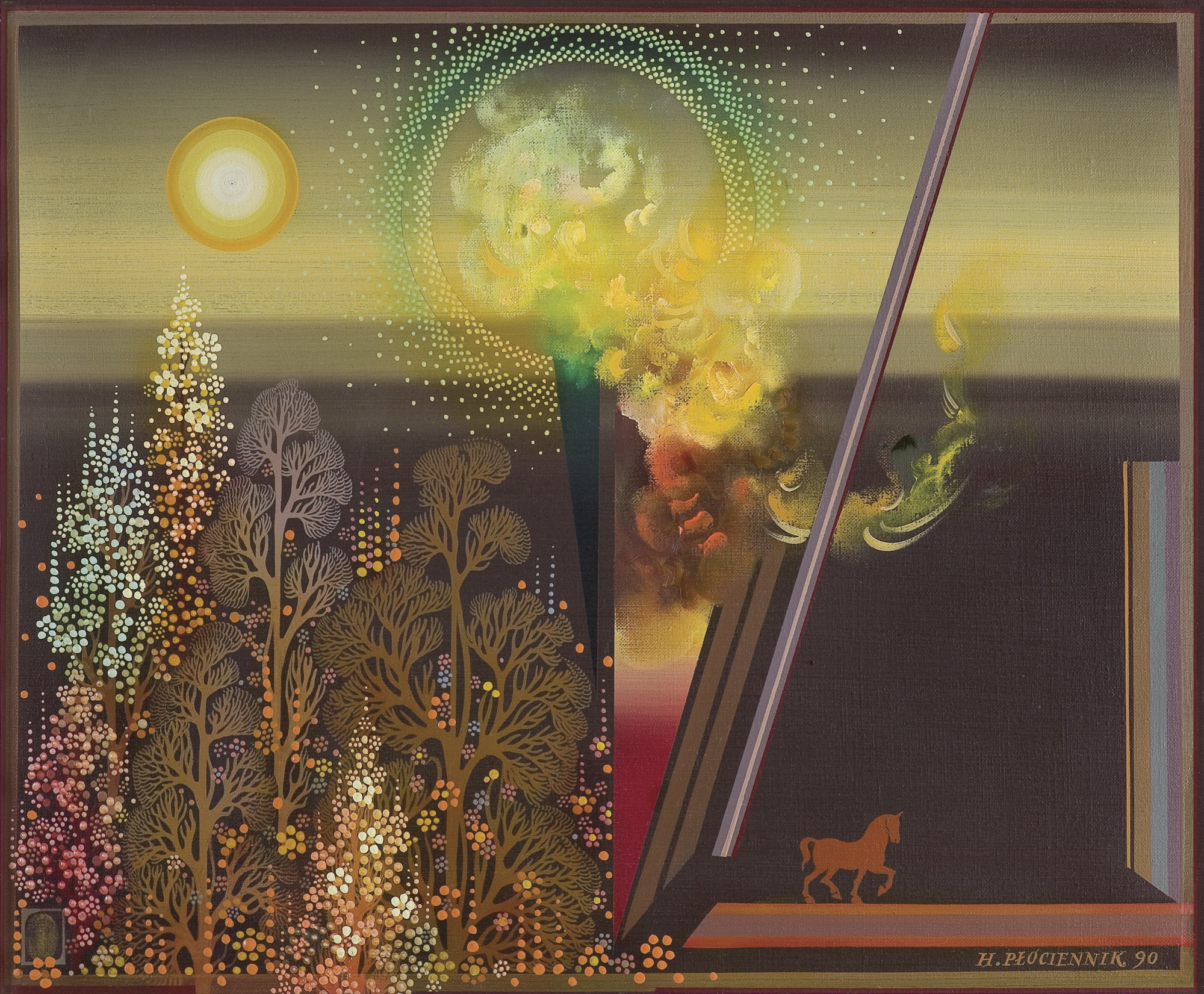 Henryk Płóciennik (Łódź 1933, Łódź 2020) malarz i grafik samouk. Zdobył wysoką pozycję jako grafik, pracujący głównie w technikach linorytu i autocynkografii. Jest autorem fantastycznych kompozycji o bogatym, ornamentalnym opracowaniu, obrazujących w zamyśle autora kosmiczne piękno i ład świata. Wielokrotnie wystawiał w kraju i za granicą, zdobywając liczne nagrody. Jego twórczość jest reprezentowana w czołowych zbiorach muzealnych, jak Muzeum Sztuki w Łodzi, liczne muzea narodowe i okręgowe, Biblioteka Jagiellońska i in. W 2004 w Łodzi powstała Fundacja „Arkadia” jego imienia, której celem jest zebranie, opracowanie i popularyzacja twórczości artysty. Artysta był również miłośnikiem i kolekcjonerem nagrań muzyki jazzowej.
