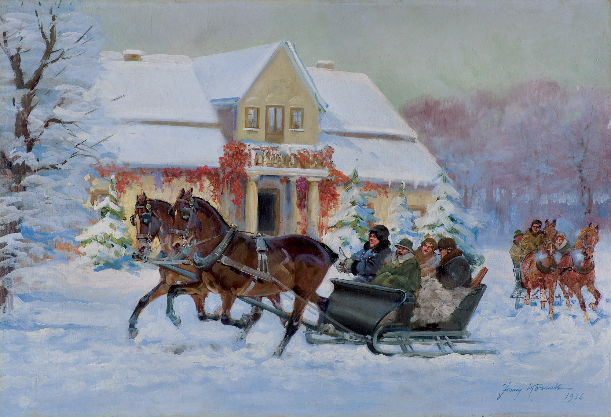 Jerzy Kossak (Kraków 1886 - Kraków 1955)- syn Wojciecha, wnuk Juliusza Kossaków - od wczesnego dzieciństwa malował pod kierunkiem ojca i dziadka. Kontynuator i naśladowca ich sztuki tworzył sceny batalistyczne, historyczne i rodzajowe z wszechobecnym motywem konia. Malował obrazy z powstania listopadowego, wojen napoleońskich oraz wiele scen z wojny 1920 roku. Najbardziej znaną jego kompozycją tego rodzaju był Cud nad Wisłą. Malował też liczne Pogonie i Pościgi ułanów za kozakami, Napady wilków, Polowania i Wesela. Tematyka tych prac sprawia, że stale cieszą się zainteresowaniem zbieraczy i publiczności, zawsze tłumnie odwiedzającej wystawy malarstwa Kossaków.