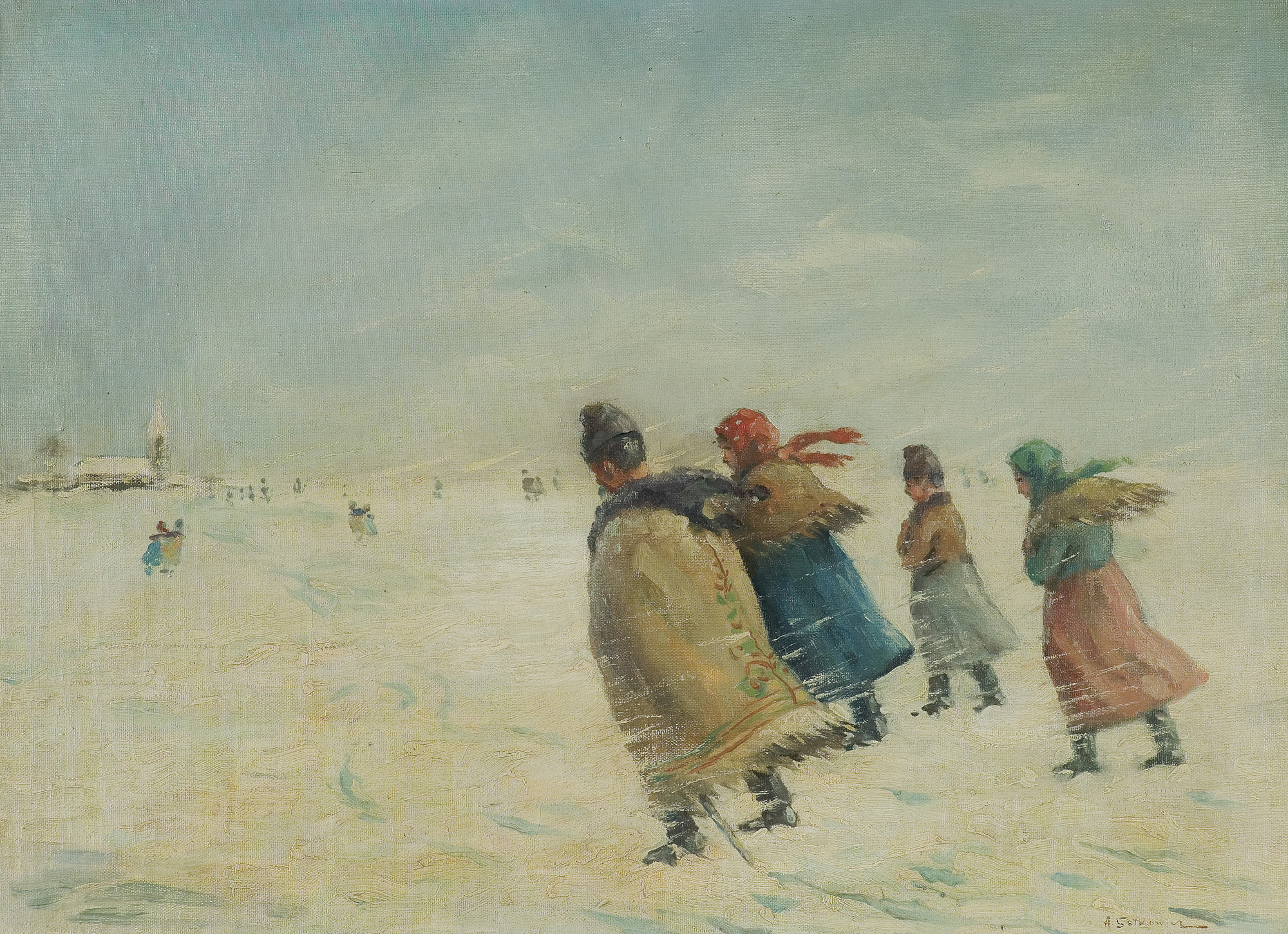 Adam Setkowicz (Kraków 1876 - Kraków 1945) to popularny malarz scen rodzajowych z zaprzęgami, polowaniami, saniami i śniegami, malowanych akwarelą bądź olejno, w których wyraźnie nawiązywał do prac A. Wierusza-Kowalskiego, J. Brandta czy też J. Fałata. O życiu artysty wiadomo jednak niewiele poza tym, że w latach 1891-1894 kształcił się w krakowskiej Szkole Sztuk Pięknych, gdzie w 1897/1898 kontynuował studia pod kierunkiem Teodora Axentowicza. W 1933 wziął udział w wystawie w Piotrkowie Trybunalskim.