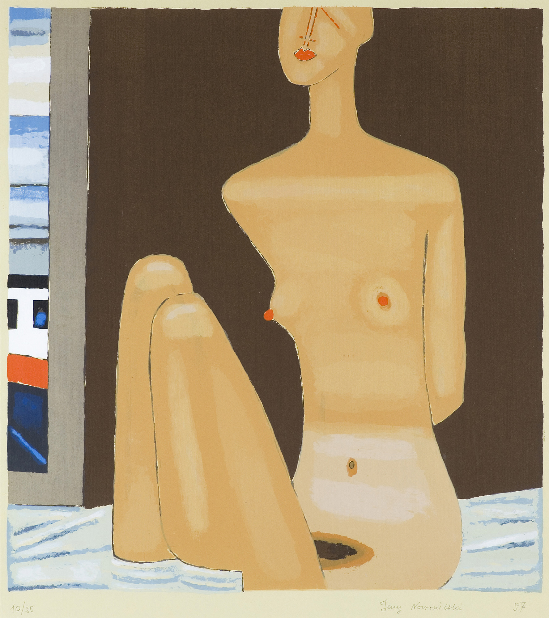 Jerzy Nowosielski (Kraków 1923 - Kraków 2011) w 1940 zaczął studia w Kunstgewerbeschule w Krakowie. W 1942 przebywał przez niecały rok w Ławrze św. Jana Chrzciciela pod Lwowem. Studiował tam sztukę malowania i historię ikon. Po powrocie do Krakowa w 1943 nawiązał ponowne kontakty z kręgiem przyszłej Grupy Krakowskiej. Po wojnie kontynuował studia w ASP w Krakowie pod kierunkiem prof. Eugeniusza Eibischa (1945-1947). Na I Wystawie Sztuki Nowoczesnej w Krakowie w 1948/49 pokazał obrazy utrzymane w nurcie abstrakcji geometrycznej. W latach socrealizmu nie wystawiał, zajmując się w tym czasie scenografią oraz malowaniem cerkwi i kościołów. W 1955 w Łodzi zaprezentował swą pierwszą wystawę indywidualną, w 1956 wziął udział w XXVIII Biennale w Wenecji. W latach 1957-1962 był pedagogiem w Państwowej Wyższej Szkole Sztuk Plastycznych w Łodzi, następnie w Akademii krakowskiej, gdzie wykładał na Wydziale Malarstwa do przejścia na emeryturę w 1993. W drugiej połowie lat 50. osiągnął charakterystyczny styl aktów, pejzaży i scen figuralnych we wnętrzach, który zawdzięczał swej fascynacji ikoną i doświadczeniom z malarstwem sakralnym. W 1976 podjął na nowo realizacje monumentalne, wykonując m.in. malowidła ścienne, stacje Drogi Krzyżowej i projekty witraży w kościele Opatrzności Bożej w Wesołej pod Warszawą (1976-1979). Artysta powszechnie uznawany był za autorytet w dziedzinie sztuki zakorzenionej w wartościach duchowych.