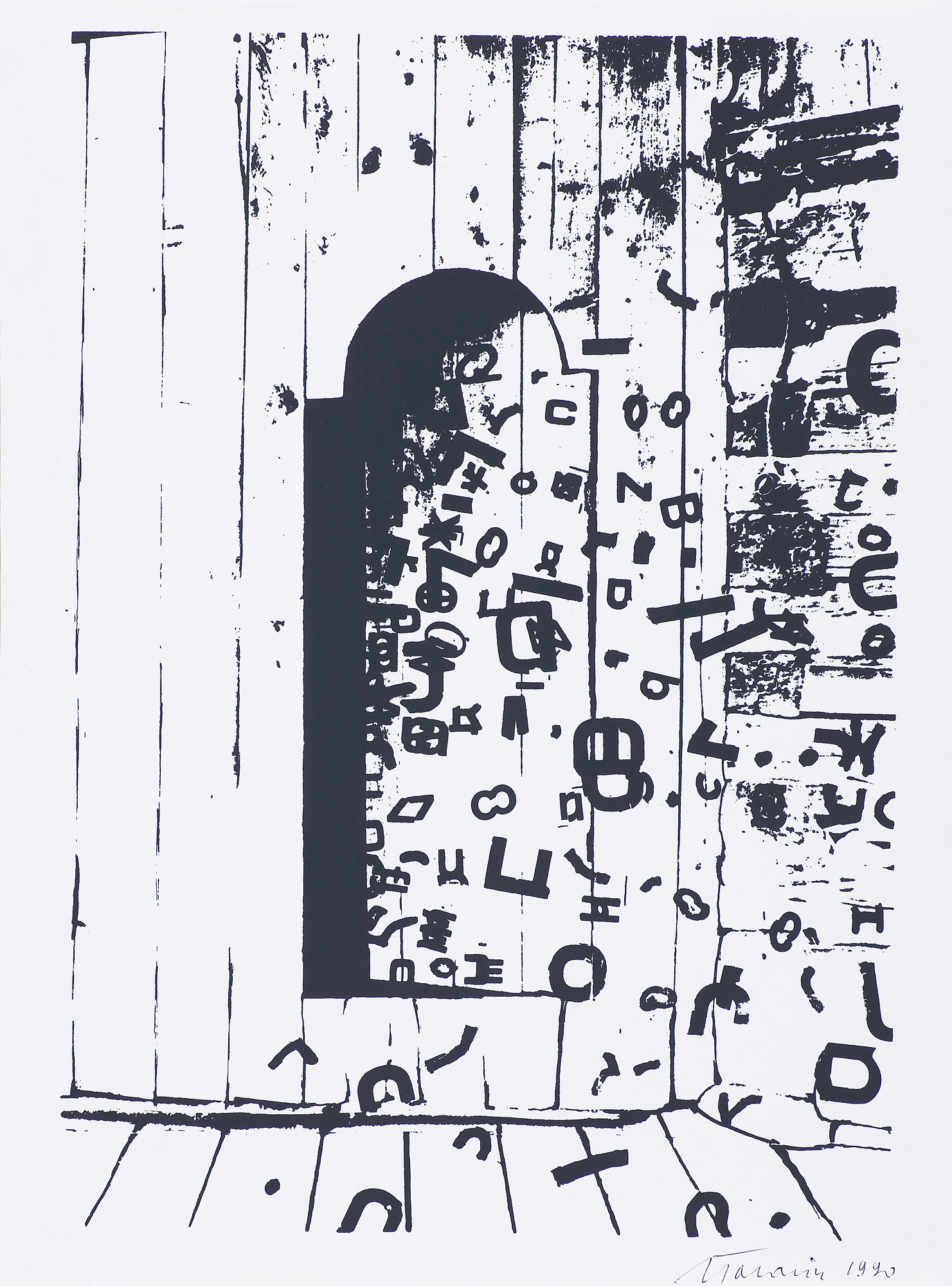 Jan Tarasin (Kalisz 11 IX 1926 - Warszawa 8 VIII 2009) studiował malarstwo w ASP w Krakowie pod kierunkiem prof. Zbigniewa Pronaszki (1946-1951). Jeszcze jako student zadebiutował na I Wystawie Sztuki Nowoczesnej w Krakowie w 1948/49. W połowie lat 50. stworzył cykle litografii: „Nowa Huta i jej mieszkańcy“, 1954, „Dom“, 1955). W pierwszym przeciwstawił się oficjalnemu optymizmowi, w drugim, operując symboliką martwej natury, zawarł treści egzystencjalne i odnoszące do niedawnego dramatu wojny. Po 1956 zaczął malować obrazy niefiguratywne. Układy wyodrębnionych elementów (określanych jako „przedmioty“) umieszczane były przez artystę na płaszczyźnie (cykl „Wnętrze“, 1957) ), lub w aluzyjnej przestrzeni (cykle „Uczta“, 1957, „Brzeg“, 1962-1964, „Przedmioty policzone“, od 1968, „Antykwariat“, 1968). Zasada ta utrzymuje się w jego malarstwie w następnych latach, różnice między okresami twórczości dotyczą sposobu opracowania „przedmiotów“ i ich usytuowania w przestrzeni obrazu lub wobec tła. Od lat 70. „przedmioty“ zmieniają się w graficzne, zwykle czarne znaki na jasnych tłach (cykl „Kolekcja“, od 1971). Tła z kolei bywają iluzyjnie przestrzenne, zróżnicowane walorowo, miękkie. W latach 90. artysta wrócił do kolorystycznego, bardziej malarskiego rozwiązywania zarówno znaków, jak i teł, często ciemnych lub przenikających się z „przedmiotami“ (cykl „Wylęgarnia przedmiotów“, 1992). Tarasin od 1962 jest członkiem „Grupy Krakowskiej“. W 1963-67 uczył na Wydziale Architektury Wnętrz krakowskiej ASP. W 1967 przeniósł się do Warszawy, w 1974 podjął pracę pedagogiczną na Wydziale Malarstwa ASP w Warszawie. W 1987-90 był rektorem tej uczelni. W 1976 otrzymał Nagrodę Krytyki Artystycznej im. Cypriana Kamila Norwida, w 1984 Nagrodę im. Jana Cybisa.; Nagroda na MB Sztuki w San Marino 1965. Równolegle z malarstwem zajmował się rysunkiem i grafiką - do lat 60. litografią, od 1974 serigrafią. W 1974-1981 wydał 8 autorskich „Zeszytów“ z serigrafiami i własnymi tekstami. W 1995 w Galerii Zachęta odbyła się wystawa artysty, której towarzyszył monograficzny katalog.