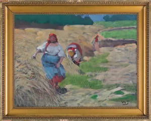 Włodzimierz Przerwa-Tetmajer (Harklowa koło Ludźmierza na Podhalu 1862 - Kraków 1923), przyrodni brat poety Kazimierza, naukę malarstwa rozpoczął wcześnie; już od 1875 uczęszczał na zajęcia do Szkoły Sztuk Pięknych w Krakowie, gdzie następnie (z przerwami) kształcił się do 1895 - początkowo u Franciszka Cynka, Leopolda Loefflera i Władysława Łuszczkiewicza, a po 1889 u Jana Matejki. Równolegle studiował filologię klasyczną na Uniwersytecie Jagiellońskim. W 1882 uczył się jeszcze w Akademii Wiedeńskiej, a w latach 1886-89 w Akademii Monachijskiej u Aleksandra Wagnera. Studia uzupełniał w paryskiej Académie Colarossi. Stypendium cesarskie umożliwiło mu wyjazd do Rzymu. Po powrocie mieszkał w Krakowie. W 1890 ożenił się z Anną Mikołajczykówną, córką gospodarza z podkrakowskiej wsi Bronowice, gdzie sam często przebywał, a w 1895 zamieszkał na stałe. W 1901 założył i następnie przez kilka lat prowadził szkołę malarstwa dla kobiet. Od 1899 był członkiem Towarzystwa Artystów Polskich „Sztuka”; w 1901 jednym z założycieli Towarzystwa „Polska Sztuka Stosowana”; w 1908 współzałożycielem grupy „Zero”. Był wybitnym przedstawicielem nurtu „ludowości”, malarzem obyczajów, pracy i krajobrazu podkrakowskiej wsi. We wcześniejszym okresie tworzył w duchu akademickiego, monachijskiego realizmu. Później wykształcił własny, oryginalny styl - kompozycja jego obrazów była swobodna, malował szerokimi pociągnięciami pędzla, używał jasnych, żywych barw. W latach 1892-1894 współpracował z Wojciechem Kossakiem i Janem Styką przy Panoramie Racławickiej. Projektował witraże, zajmował się ilustratorstwem i malarstwem ściennym, m.in. w 1902 wykonał polichromię kaplicy królowej Zofii w Katedrze na Wawelu. Artysta był pierwowzorem postaci Gospodarza w dramacie S. Wyspiańskiego Wesele.