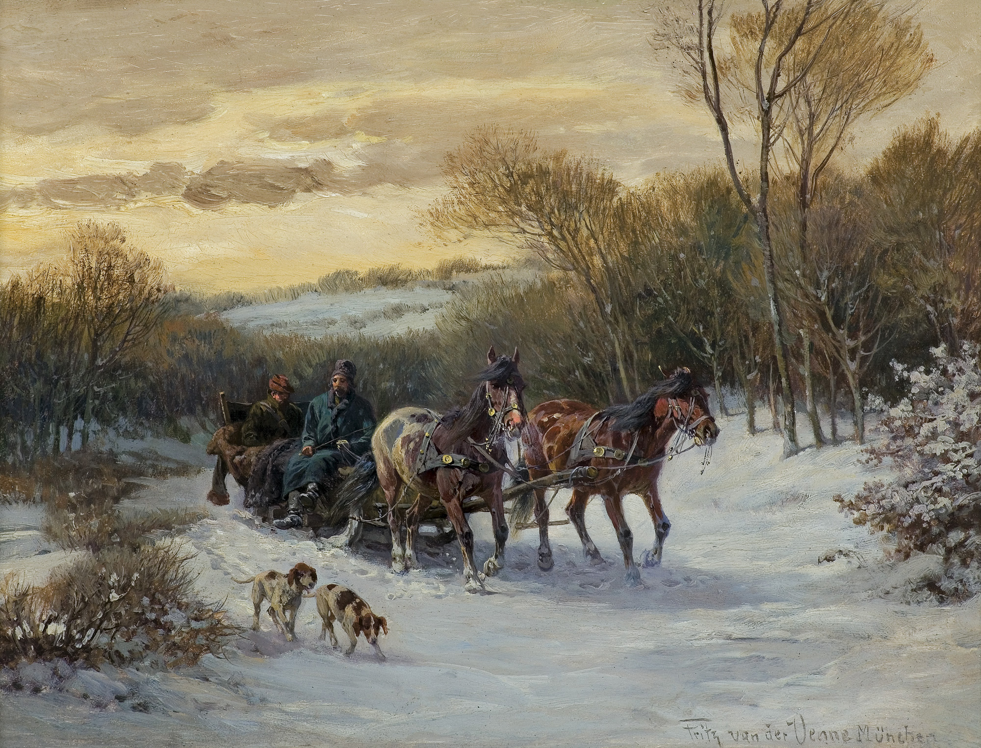Fritz van der Venne - popularny malarz czynny w Monachium. Ulubionym motywem jego obrazów były konie, które przedstawiał w rodzajowo ujętych scenach na tle, najczęściej zimowego, krajobrazu. Malował zaprzęgi, powozy, sanny, wyjazdy i powroty z polowań, sceny z węgierskiej puszty, a nawet konne, „polskie“ korowody weselne.