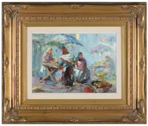 Erno Erb (Lwów 1878 lub 1890 - Lwów 1943) był artystą związanym ze środowiskiem lwowskim; mieszkał we Lwowie i w Truskawcu. Malował motywy miejskie, sceny rodzajowe, targowiska, charakterystyczne typy ukraińskich chłopów i Żydów, pejzaże i martwe natury. Posługiwał się pastelami, akwarelą i farbami olejnymi. Jego olejne obrazy, odznaczające się bogatą fakturą grubo kładzionej farby, bywały porównywane z pracami niemieckiego malarza Maxa Liebermana. Artysta wielokrotnie wystawiał w Towarzystwie Przyjaciół Sztuk Pięknych we Lwowie i w Krakowie oraz w warszawskiej Zachęcie. W roku 1929 brał udział w Powszechnej Wystawie Krajowej w Poznaniu, a w roku 1932 w Wystawie Sztuki Polskiej w Buffalo.