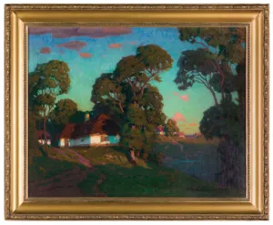 SKRAJ WSI O ZACHODZIE SŁOŃCA