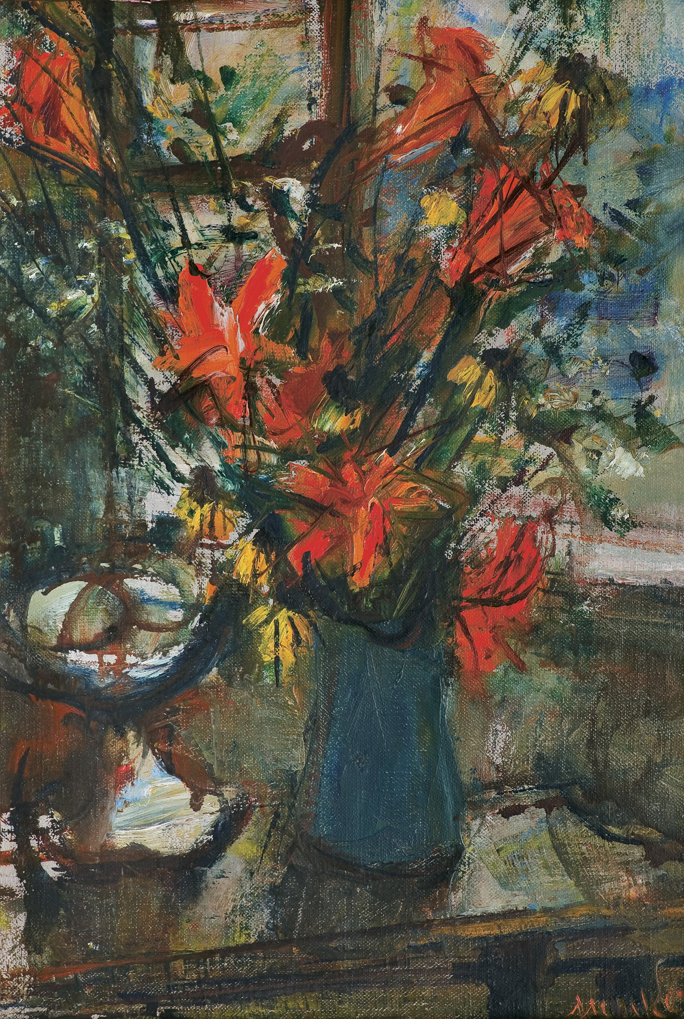 Zygmunt Menkes (Lwów 1896 - Riverdale, Nowy Jork 1986) naukę malarstwa rozpoczął pod kierunkiem Kazimierza Sichulskiego w lwowskiej Szkole Przemysłu Artystycznego. Następnie, w latach 1919-1922 studiował w krakowskiej Akademii Sztuk Pięknych u Wojciecha Weissa. W roku 1922 wyjechał do Berlina, gdzie poznał Aleksandra Archipenkę i korzystał z jego wskazówek. Od roku 1923 stale przebywał w Paryżu. Związany ze środowiskiem artystów École de Paris, przyjaźnił się, m.in. z E. Zakiem i M. Chagallem. Uczestniczył w Salonach Jesiennych, Niezależnych i Tuileries, wystawiał w wielu galeriach paryskich. Często przyjeżdżał do kraju; był członkiem lwowskiego ugrupowania Nowa Generacja i krakowskiego Zrzeszenia Artystów Plastyków Zwornik, uczestniczył w wystawach we Lwowie i w Warszawie. Wiele podróżował, m.in. w 1928 był w Berlinie, a w 1935 w Hiszpanii (razem z A. Nachtem-Samborskim). W 1935 wyjechał do Nowego Jorku, gdzie osiadł na stałe i gdzie w 1936 miał wystawę indywidualną. Przez lata współpracował z tamtejszymi galeriami sztuki i wykładał w Art Students League. Malował portrety, akty, kompozycje figuralne, martwe natury i pejzaże, a po 1940 także obrazy nawiązujące do martyrologii Żydów. Jego malarstwo ulegało różnym przemianom stylistycznym. W okresie paryskim obrazy artysty bliskie były nurtom ekspresjonizmu i fowizmu. W okresie powojennym ograniczał kolorystykę, wprowadzał mocną linię konturu, bogatą fakturę, a z czasem także coraz wyraźniejszą geometryzację form.