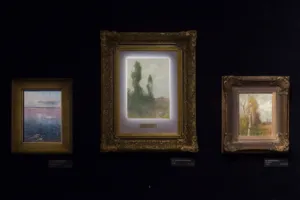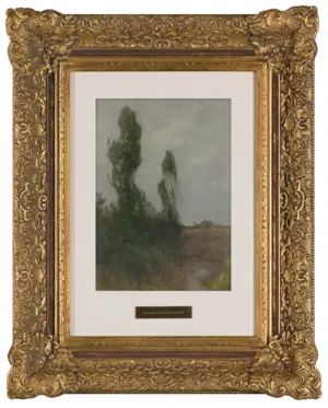 Roman Kochanowski (Kraków 1857 - Freising k. Monachium 1945) - malarz i grafik - był jednym z polskich artystów osiadłych i stałe działających w Monachium. Studia malarskie rozpoczął w Krakowie; początkowo w prywatnej pracowni Maksymiliana Cercha, a w latach 1873- 1875 w Szkole Sztuk Pięknych u Władysława Łuszczkiewicza i pejzażysty Henryka Grabińskiego. Przez następne dwa lata uczył się jeszcze na wydziale pejzażu w Akademii wiedeńskiej. W 1881 przeniósł się do Monachium, gdzie miał własną pracownię, a niebawem założył rodzinę. Często jednak przyjeżdżał do Krakowa, bywał w Poznańskiem, odbył podróż po Galicji i Podolu, rysując krajobrazy i widoki miast, które weszły następnie do albumu wydanego w Wiedniu w roku 1898. Artysta należał do monachijskiego Kunstvereinu, brał udział w wielu wystawach w Niemczech, w Wiedniu, w Londynie; swoje prace przesyłał też na pokazy krajowe. Malował przede wszystkim pejzaże a tylko z rzadka kwiaty i portrety. Stałym i ulubionym motywem jego obrazów był polski, podkrakowski krajobraz z wplecionymi weń postaciami ludzi. Obrazy artysty, malowane często na niewielkich deseczkach, pozbawione warstwy anegdotycznej odznaczają się niecodziennymi walorami malarskimi, harmonią koloru i pełnym liryzmu nastrojem. Zauważane i nagradzane na licznych wystawach były też wysoko cenione na rynku sztuki. W roku 1892, po wystawie w Wiedniu, jeden z obrazów Kochanowskiego zakupił do swoich zbiorów cesarz Franciszek Józef; dwa inne nabyli członkowie cesarskiej rodziny. Wielbicielem jego malarstwa był Karol Józef Luitpold, książę regent Bawarii. Wielka wrażliwość artysty na krajobraz i przyrodę widoczna jest także w jego rysunkach i akwafortach.