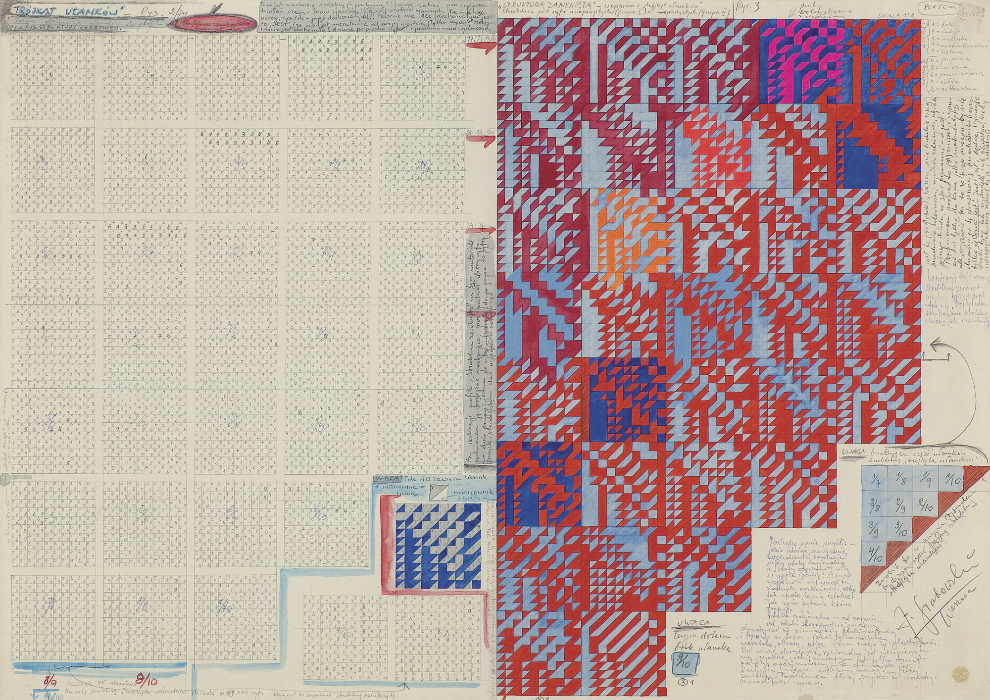 Jerzy Grabowski (ur. Gutki koło Łomży 26.IX.1933) w latach 1953-1962 studiował początkowo na Wydziale Architektury Politechniki we Wrocławiu, następnie na Wydziale Grafiki ASP w Warszawie. Dyplom w pracowni prof. Józefa Mroszczaka. Od roku 1976 był pedagogiem w PWSSP w Łodzi prowadząc pracownię druków płaskich. Od roku 1993 wykładał w Europejskiej Akademi Sztuk w Warszawie. Juror międzynarodowych biennale i konkursów, członek Międzynarodowego Stowarzyszenia Drzeworytników XYLON. Uprawiał malarstwo, grafikę artystyczną i użytkową oraz rysunek. Jego twórczość oparta jest na strukturach matematycznych. Matematyka stanowiła dla niego istotny punkt odniesienia,wykorzystywał też zjawiska iluzji wzrokowej. Najczęściej występującą formą jest trójkąt przyjęty jako najprostsza a zarazem najdoskonalsza figura, zaś system barw podporządkowany jest wartościom cyfrowym. Struktury kompozycji są otwarte, wykraczające daleko poza ramy obrazu, rozciągające się do nieskończoności. Artysta miał ponad 40 wystaw indywidualnych w kraju i za granicą. Ważniejsze nagrody; 1974 - Medal Brązowy na 13 Międzynarodowym Konkursie Rysunku im. Joan`a Miro w Barcelonie, 1979 Grand Prix - 2 Quadriennale Drzeworytu i Linorytu Polskiego w Olsztynie, 1999 - Złoty Medal - 12 Norweskie Międzynarodowe Triennale Grafiki, Fredrikstadt.