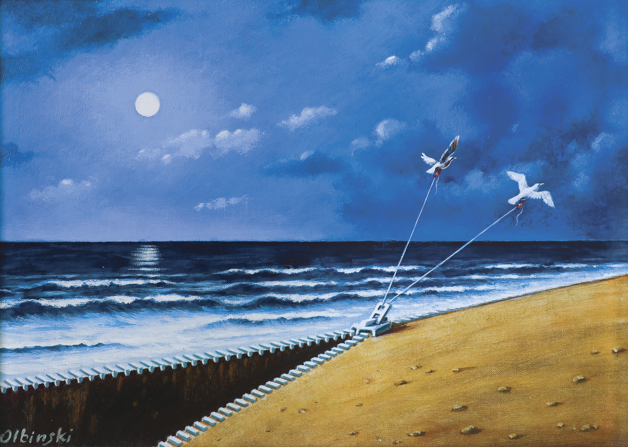 Rafał Olbiński (Kielce 1945, mieszka w Warszawie) - studiował na Wydziale Architektury Politechniki Warszawskiej, gdzie uzyskał dyplom w 1969. Od lat studenckich zajmował się grafiką użytkową i plakatem. Uczestniczył w wielu polskich i międzynarodowych wystawach związanych z grafiką i plakatem. Był autorem oprawy graficznej magazynu "Jazz Forum". W 1981 wyjechał z Polski i osiadł w Nowym Jorku gdzie kantynuował twórczość plakatową, a także zajął się malarstwem, rysunkiem prasowym i ilustracją. Debiutował w 1981 okładką do pisma "Psychology Today". Publikował w czasopismach takich jak "Newsweek", "Time", "Business Week", "The New York Times", "Atlantic Monthly", "Playboy", "New Yorker", "Omni". Od 1985 wykładał w School of Visual Arts w Nowym Jorku. Od wielu lat projektuje też plakaty dla New York City Opera. W 1994 otrzymał paryską nagrodę za najbardziej pamiętny plakat roku (International Oscar for the World's Most Memorable Poster "Prix Savignac 1994"), w 1995 wygrał konkurs na plakat "Nowy Jork – stolica świata". Jest reprezentowany w zbiorach takich, jak Museum of Modern Art w Nowym Jorku, Library of Congress Print Collection w Waszyngtonie, Muzeum Plakatu w Wilanowie oraz w wielu innych publicznych i prywatnych kolekcjach na całym świecie. Od lat 90. często bywa i wystawia w Polsce, obecnie mieszka w Warszwie. Jego prace odznaczają się specyficznym typem obrazowania, który zaskarbił mu opinię surrealisty. Dzięki zaskakującym zestawieniom elementów obrazu, łączeniu różnych planów i niezwykłemu skalowaniu, a także zawsze obecnej w pracach Olbińskiego narracji, jego dzieła cieszą się niesłabnącym zainteresowaniem i popularnością.