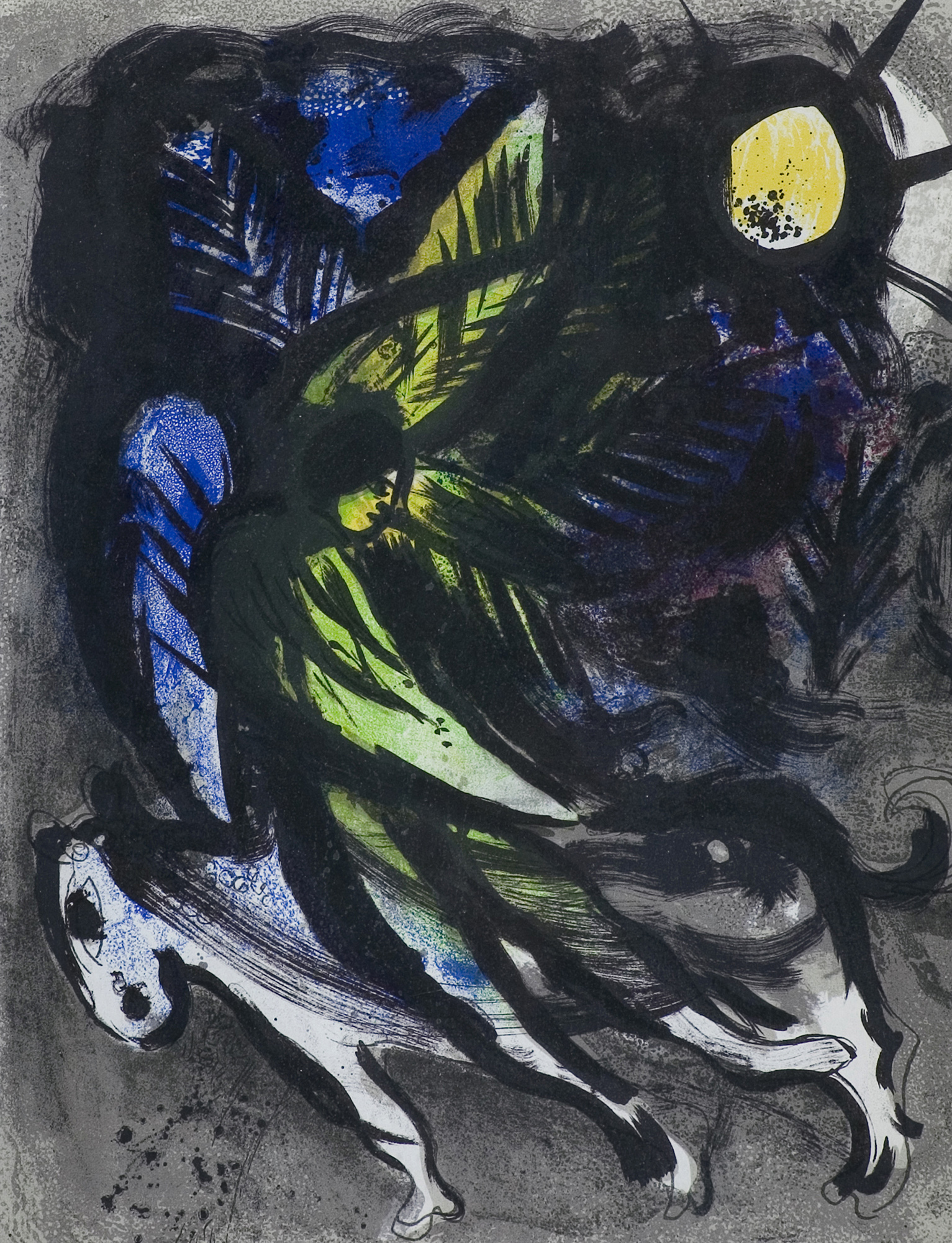 Marc Chagall uczył się rysunku u witebskiego malarza nazwiskiem Juda Pen, następnie od 1907 studiował w Akademii petersburskiej. W 1910 wyjechał na stypendium do Paryża. Zamieszkał w La Ruche na Montparnassie, wszedł do kręgu artystów, wśród których byli m.in. Modigliani, Soutine, Delaunay. W 1914 wrócił do Witebska, w 1915 poślubił Bellę (zm. 1944), muzę i bohaterkę wielu obrazów. W latach 1915-1917 mieszkał w Sankt Petersburgu, gdzie zastała go rewolucja. Mianowany komisarzem sztuk pięknych na obszar Witebska, założył tam i prowadził w latach 1918-1919 szkołę artystyczną, której profesorami byli m.in. Kazimierz Malewicz i El Lissitzky. W 1919 przeniósł się do Moskwy, gdzie do 1922 był kierownikiem artystycznym Państwowego Teatru Żydowskiego. W 1923 ostatecznie opuścił Rosję, osiedlając się w Paryżu. We Francji spędził resztę życia, z przerwą w latach 1941-1947, kiedy to schronił się w Nowym Jorku. Jego styl, wykształcony w młodości niezależnie od równoległych kierunków w sztuce, pozostał w ciągu życia artysty mało zmieniony. Wyobraźnia i sposób obrazowania Chagalla, zbliżone do sztuki naiwnej, wpisały się najsilniej w nurt surrealizmu, stając się jego znaczącym rozszerzeniem. Chagall łączył poetyckość i cudowność swych fantazji z rozwiniętym warsztatem malarza-kolorysty. Był też utalentowanym i płodnym grafikiem (cykle ilustracji do "Martwych dusz" Gogola, 1923-1927, "Bajek" La Fontaine’a, 1927-1930, Biblii, 1931-1955 – każdy cykl liczył ponad 100 plansz w technikach metalowych). Zajmował się scenografią (projekty dla Metropolitan Opera w Nowym Jorku, 1945, Opery w Paryżu, 1958), malarstwem monumentalnym (plafon w Operze paryskiej, 1963-1964), projektował witraże, dekoracje ceramiczne.