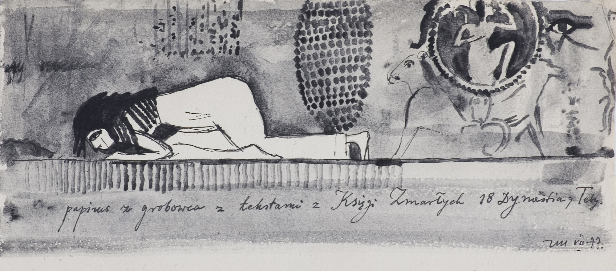 Zbigniew Makowski (Warszawa 31 I 1930 - Warszawa 19 VIII 2019) studiował w ASP w Warszawie w latach 1950-1956, dyplom uzyskał w pracowni Kazimierza Tomorowicza. Początkowo skłaniał się ku surrealizmowi - podczas pobytu w Paryżu w 1962 zetknął się z André Bretonem i międzynarodowym ruchem Phases. Jednak decydujący wpływ na wyraz jego sztuki wywarły pozamalarskie zainteresowania, jakim się oddaje. Jest literatem, poetą, erudytą, zwłaszcza zaś znawcą szerokiego spektrum filozofii i wiedzy tajemnej wielu kultur. Znawstwo to wykorzystuje w swoich pracach malarskich, rysunkowych, a także w unikatowych książkach, które własnoręcznie wykonuje na specjalnie preparowanych papierach. W swych pracach nawarstwia symbole, cytaty i znaczenia w nieczytelny, zdawałoby się, chaos. Wypada jednak wierzyć krytykom, którzy twierdzą, iż prace Makowskiego otwierają przed cierpliwym i intelektualnie przygotowanym „czytelnikiem“ świat swoistej narracji. Sam artysta zaś zwraca uwagę na „permutacyjną“ strukturę swych prac, w których rozmaite cytaty i odniesienia kulturowe przeplatają się z jego prywatną ikonografią. Tak czy inaczej, z pewnością w pracach Makowskiego da się wyróżnić pewien „alfabet“ wizualno-symboliczny, którego elementy pojawiają się w nich stale w różnych konfiguracjach. Należą doń np. takie wizerunki, jak klucz, drabina, studnia, mandala, kielich itp. Otaczają je napisy, często łacińskie, a także pojedyncze cyfry, litery, ornamenty. Określił je ktoś jako rebusy o wielkiej urodzie, które można odczytywać, można też kontemplować. Od roku 1982 artysta przestał wystawiać, ale nie tworzyć. Powstają wówczas prace będące rodzajem nowoczesnego notatnika, rozpoczętego jeszcze w latach 60., do którego artysta powraca z nowymi przemyśleniami. Artysta jest laureatem wielu nagród, m.in. Nagrody Krytyki Artystycznej im. Norwida (1973) i Nagrody im. Jana Cybisa (1992). Jego wielka kompozycja "Mirabilitas secundum diversos modos exire potest a rebus" (1973-1980) zdobi genewską siedzibę ONZ jako dar rządu polskiego.