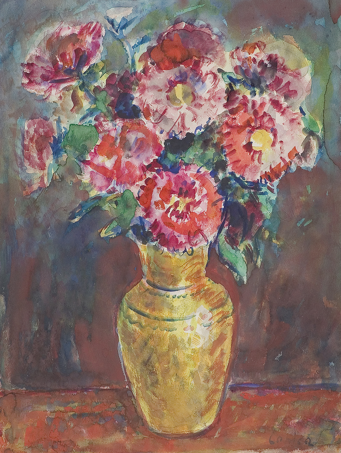 Alfred Lenica (Pabianice 1899 - Warszawa 1977) uczył się prywatnie rysunku i malarstwa w pracowniach Artura Hannytkiewicza i Piotra Kubowicza w Poznaniu (1925-1928). W latach 30. malował obrazy figuratywne, nawiązujące w stylistyce do kubizmu. Nieco później uległ wpływom surrealizmu, który, pomijając lata socrealizmu, stanie się dlań najpoważniejszym obszarem poszukiwań malarskich. Od połowy lat 40. utrzymywał stałe kontakty z kręgiem „Grupy Krakowskiej“, przyjaźnił się z Jerzym Kujawskim. Po przeniesieniu się do Poznania, w 1947 został współzałożycielem awangardowej grupy „4F+R“ (farba, forma, fantastyka, faktura + realizm). Jest autorem pierwszego polskiego obrazu taszystowskiego (Farby w ruchu, 1949, tempera). W okresie socrealizmu włączył się w nurt oficjalnej sztuki, pracując jednocześnie jako organizator życia artystycznego, prezes Okręgu Poznańskiego ZPAP (1948-1950) i jednocześnie kierownik Pracowni Sztuk Plastycznych tamże. W końcu lat 50. przeniósł się do Warszawy i również tu do 1969 pełnił kierownicze funkcje w ZPAP. W drugiej poł. lat 50. ponownie - po eksperymentach z lat 40. - uprawiał informel, malując chętnie techniką drippingu. Około 1958 wypracował indywidualny, charakterystyczny dlań styl wirujących, kolorowych, niekiedy kaligraficznie opracowanych form, które dynamicznie wypełniały pola obrazów. Tworzył je techniką zbliżoną do surrealistycznej dekalkomanii. Styl ten stał się znakiem rozpoznawczym artysty do końca życia. W swych obrazach nie unikał kształtów nawiązujących do form naturalnych (jego malarstwo nazywano „biologicznym“), a w latach 70. niekiedy włączał do kompozycji motywy figuralne. Wystawa retrospektywna artysty odbyła się w Galerii Zachęta w Warszawie w 1974.
