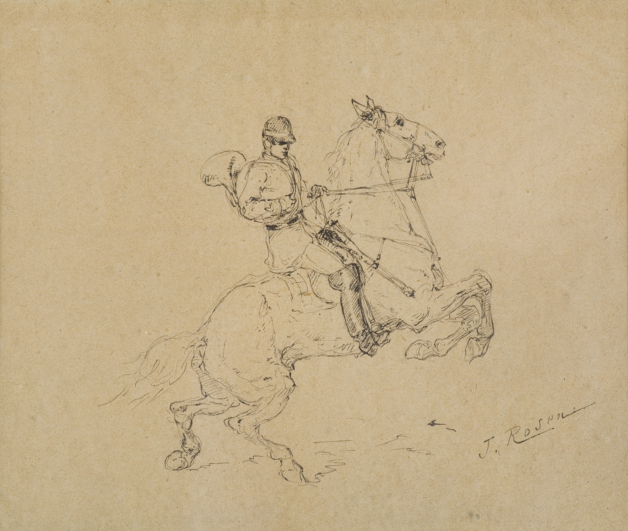 Jan Rosen (Warszawa 1854 - Warszawa 1936), popularny malarz-batalista, pierwsze lekcje rysunku pobierał już w dzieciństwie - u Henryka Redlicha w Dreźnie i Franciszka Kostrzewskiego w Warszawie. Później, w latach 1872-1874 studiował w Monachium - w Akademii pod kierunkiem Alexandra Strähubera i rzeźbiarza Ferdinanda Bartha oraz w prywatnej pracowni Józefa Brandta, a w latach 1875-1879 w École des Beaux-Arts w Paryżu u Isidora Pilsa i Jean-Léona Gerome’a. Długo przebywał poza krajem, wiele podróżował; mieszkał w Monachium, Paryżu, Lozannie. W roku 1891 został nadwornym malarzem dworu petersburskiego. Do kraju wrócił w roku 1921; początkowo mieszkał na wsi, później w Warszawie i we Lwowie. Wyjeżdżał także do Włoch. Malował przede wszystkim obrazy o tematyce wojskowej, sceny batalistyczne z czasów napoleońskich i powstania listopadowego oraz obrazy rodzajowe z ulubionym motywem jeźdźców i koni.