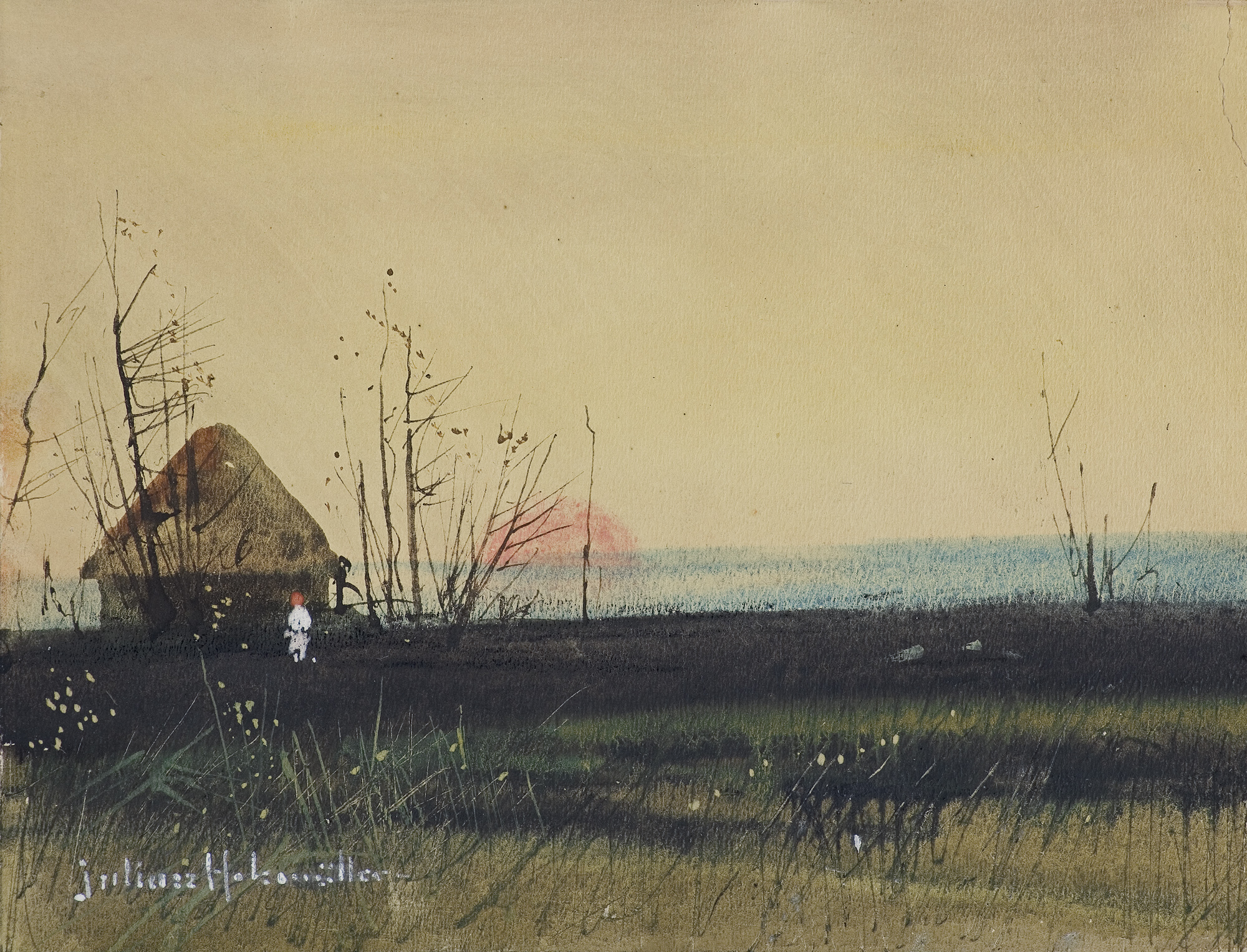 Juliusz Holzmüller (Bolechów, Ukraina 1876 - Lwów 1932) po ukończeniu kursu malarstwa dekoracyjnego w Szkole Przemysłowej we Lwowie studiował u Floriana Cynka, Józefa Mehoffera i Teodora Axentowicza w krakowskiej Akademii Sztuk Pięknych, a w latach 1903-1904 także w Monachium. Po studiach, od 1906 stale mieszkał i tworzył we Lwowie. Jego akwarele, bo tą techniką posługiwał się najczęściej, znajdowały wielu chętnych odbiorców. Artysta malował, m.in. cykle obrazów do myśliwskiego pawilonu księcia Ottona Habsburga w Rafajłowej, cykle z wizerunkami koni z wielkich stadnin, szkice i obrazy batalistyczne z udziałem konnicy japońskiej (jedna z akwarel do dziś znajduje się w kasynie oficerskim w Tokio). Tworzył ponadto pejzaże, widoki miejskie, sceny rodzajowe z ulubionym motywem koni. Wystawiał często - we Lwowie, w krakowskim TPSP i warszawskiej Zachęcie. Jego prace znajdują się w muzeach w Krakowie, Łańcucie i we Lwowie.