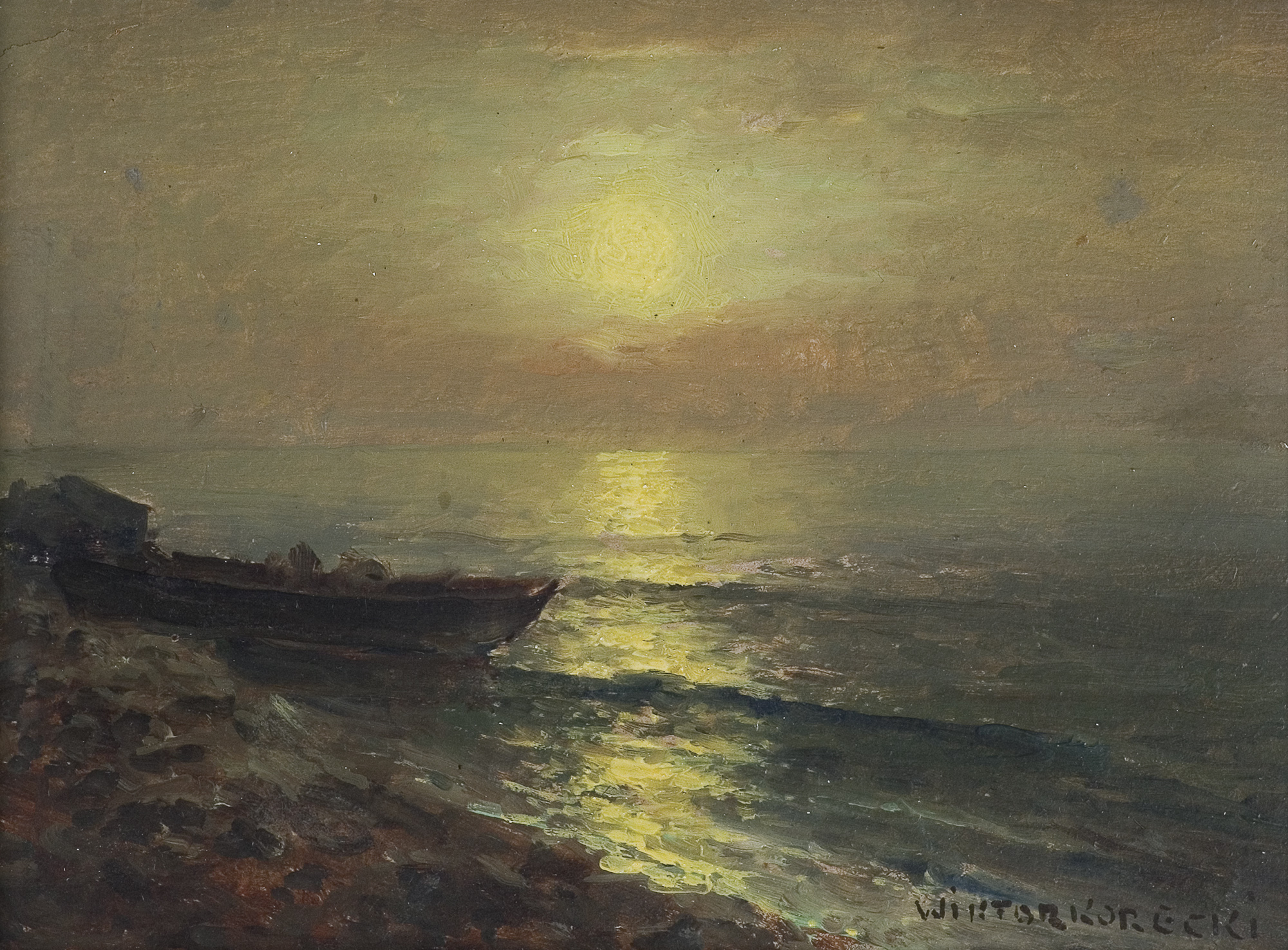 Wiktor Korecki (Kamieniec Podolski 1890 - Komorów k. Warszawy 1980) - malarz pejzażysta - gimnazjum ukończył w Kijowie, tam też studiował w Szkole Rysunkowej Aleksandra Muraszki. Po studiach wrócił do Kamieńca Podolskiego, skąd w roku 1921 wyjechał do Warszawy. Tu miał pracownię na rogu ulic Tamki i Cichej. Niestety zgromadzone tam obrazy spłonęły w czasie powstania 1944 roku. Po powstaniu artysta przebywał w obozie w Pruszkowie skąd trafił do obozu pracy w Lipsku. Do kraju powrócił w roku 1946 i zamieszkał w Komorowie pod Warszawą, a później w Milanówku. Jego nastrojowe krajobrazy emanujące spokojem i pogodą cieszyły się zawsze dużą popularnością. Korecki najczęściej malował pejzaże zimowe z motywem leśnej drogi i strumienia wijącego się wśród śniegów, a obok nich także wiosenne, letnie czy jesienne widoki z Mazowsza.