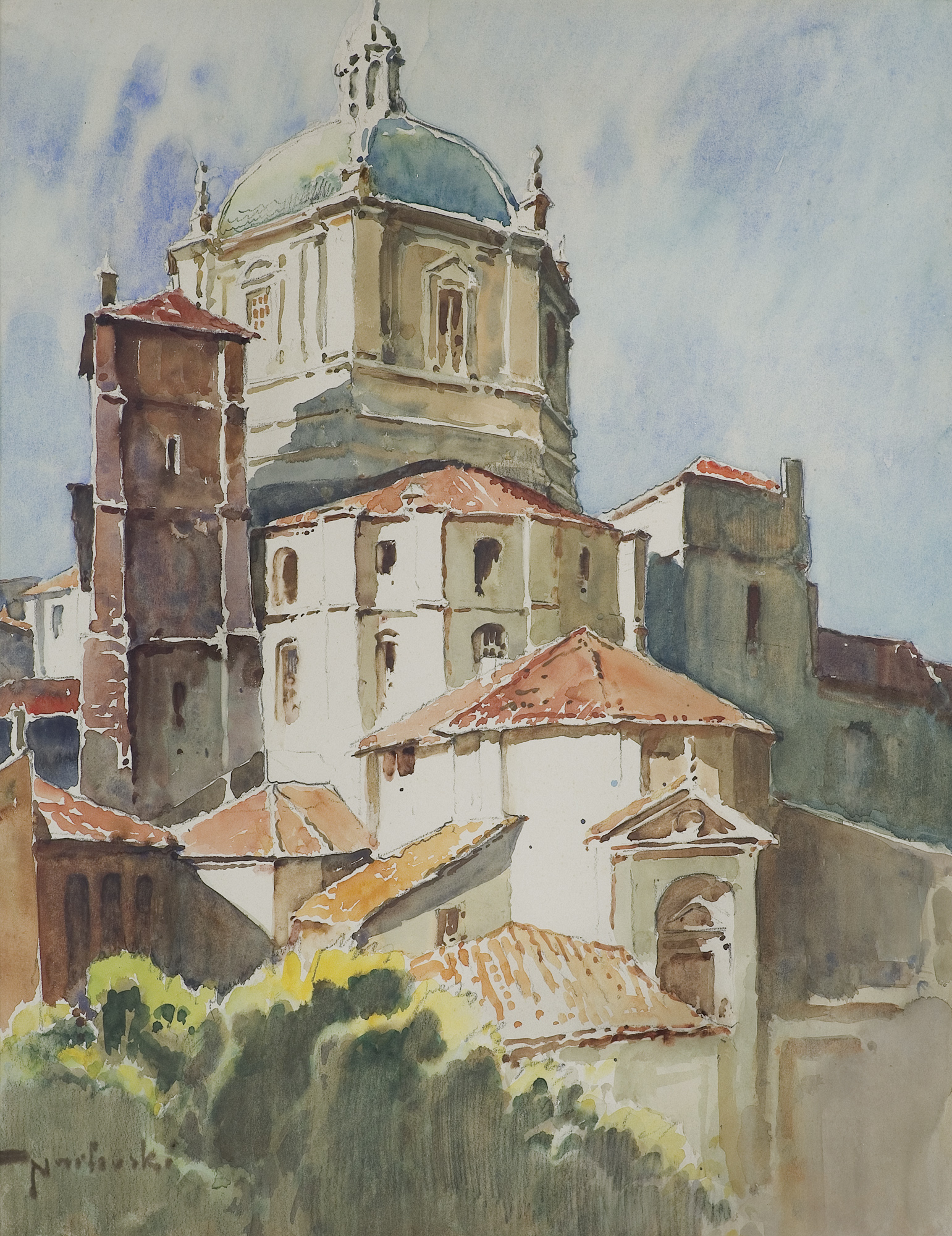 Tadeusz Nartowski początkowo uczył się rysunku u Feliksa Słupskiego w Warszawie, a następnie studiował w warszawskiej Szkole Sztuk Pięknych pod kierunkiem K. Stabrowskiego, F.Ruszczyca i K. Krzyżanowskiego. W okresie międzywojennym stale mieszkał w Warszawie, skąd podróżował do Włoch, Francji, Niemiec, Anglii, Hiszpanii, Jugosławii, na Węgry i do Maroka. W latach 1921-25 wykładał w warszawskiej SSP. Od 1912 regularnie wystawiał w Towarzystwie Zachęty Sztuk Pięknych gdzie w 1927 i 1933 odznaczony został brązowym i złotym medalem. Wystawiał też w warszawskim Salonie Garlińskiego oraz w Lublinie, Krakowie i w Gdyni, a w 1935 w Berlinie. Po II wojnie światowej mieszkał w Szczecinie. Był wybitnym akwarelistą; malował martwe natury i portrety, a przede wszystkim krajobrazy i architekturę – tak z kraju, jak i ze swych rozlicznych podróży.