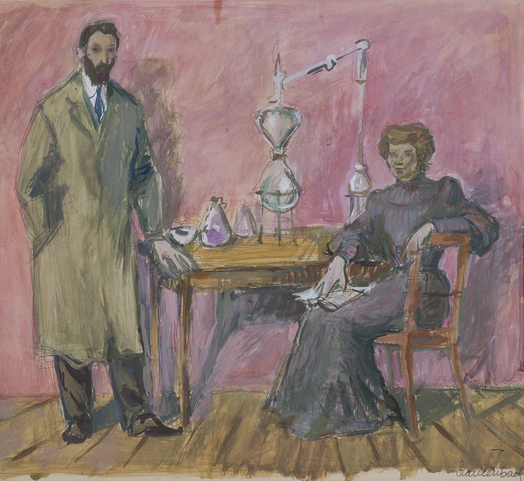 Jan Szancenbach (Kraków 1928 - Kraków 1998) studiował w latach 1940-1942 w Kunstgewerbeschule (czyli ASP zdegradowanej przez okupanta do roli szkoły zawodowej) pod kierunkiem m.in. Stanisława Kamockiego, Józefa Mehoffera, Andrzeja Jurkiewicza. Po zamknięciu uczelni, w latach 1942-1945 pracował zarobkowo i samodzielnie studiował. W 1945 został przyjęty ponownie na II rok studiów, które ukończył pod kierunkiem Eugeniusza Eibischa w 1948 (dyplom uzyskał w 1952). Od 1948 pracował jako asystent w macierzystej pracowni oraz w pracowni liternictwa i projektowania graficznego Ludwika Gardowskiego. Przeszedł wszystkie szczeble kariery akademickiej, od asystenta do profesora zwyczajnego (od 1986). Od 1972 prowadził własną katedrę na Wydziale Malarstwa. W latach 1987-1993 przez dwie kadencje był rektorem ASP w Krakowie. Jako malarz pozostawał wierny szkole koloryzmu polskiego, którego zasady przyswoił sobie w trakcie studiów u Eibischa. Jego malarstwo jest pełne światła i nasyconych barw, radosne, wręcz feeryczne. Obok wybitnych walorów kolorystycznych (zwłaszcza w czerwieniach malarz osiągał niezwykłą skalę odmian i odcieni) nie stroni od dekoratywizmu, co razem składa się na hedonistyczny, beztroski wyraz. Znany przede wszystkim jako twórca martwych natur, pejzaży, scen w ogrodach, Szancenbach zajmował się również malarstwem monumentalnym. Pracował m. in. przy renowacji Teatru im. Słowackiego w Krakowie oraz widowni i plafonu Opery we Wrocławiu. Innym wątkiem jego sztuki było projektowanie graficzne (znaki firmowe, plakaty, okładki, opakowania, etykiety, znaczki pocztowe itp.), zajmował się również ilustracją książkową i filmem rysunkowym.