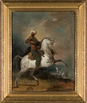 Aleksander Orłowski (Warszawa 1777 – Petersburg 1832) - malarz, rysownik i grafik. Protegowany księżnej Izabelli Czartoryskiej, w latach 1793-1801 kształcił się w pracowni J. P. Norblina, który wywarł zasadniczy wpływ na całą jego późniejszą twórczość. Dorywczo uczył się także w zamkowej „malarni” M. Bacciarellego, u miniaturzysty W. de Lesseura i sztycharza B. Folino. Brał udział w powstaniu kościuszkowskim. Okresowo pracował dla ks. Józefa Poniatowskiego i dla ks. Heleny Radziwiłłowej. W roku 1802 wyjechał na Litwę, a stamtąd do Petersburga, gdzie zamieszkał na stałe, zyskując wkrótce ogromną popularność. Został nadwornym rysownikiem wielkiego księcia Konstantego, pracował też dla cesarza Aleksandra I. W roku 1809 otrzymał tytuł akademika petersburskiej Akademii Sztuk Pięknych. Był przede wszystkim rysownikiem, chętnie malował też pastelami i olejno. Tematyka jego prac była różnorodna: tworzył sceny batalistyczne, rysował i malował wschodnich jeźdźców, charakterystyczne typy ludowe, sceny z życia wsi, pejzaże, portrety i karykatury. Od 1816 zajmował się litografią, popularyzując tę technikę na terenie Rosji. Był wybitną postacią polskiej kolonii artystycznej w Petersburgu. Z podziwem pisał o Orłowskim Aleksander Puszkin, odnajdujący w jego sztuce cechy bliskie własnym, romantycznym ideałom, a zaprzyjaźniony z nim Adam Mickiewicz w „Panu Tadeuszu” kilka wierszy poświęcił „naszemu malarzowi Orłowskiemu”, który mimo, że „życie strawił w Peterburku | Sławny malarz (mam jego kilka szkiców w biurku),| Mieszkał tuż przy cesarzu, na dworze, jak w raju,| A nie uwierzy Hrabia, jak tęsknił po kraju,| Lubił ciągle wspominać swej młodości czasy,| Wysławiał wszystko w Polszcze: ziemię, niebo, lasy...”