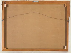 – ponadto na górnej listwie ramy dwie nalepki wystawowe z Muzeum Okręgowego w Sandomierzu i Muzeum im. Jacka Malczewskiego w R...