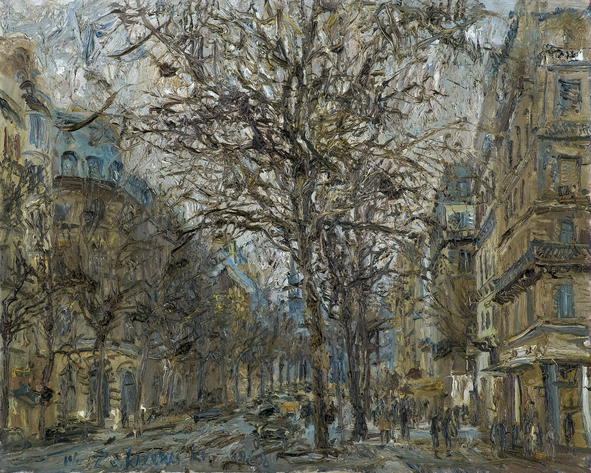 Włodzimierz Zakrzewski (Petersburg 1916 - Warszawa 1992) naukę rysunku i malarstwa rozpoczął już w latach gimnazjalnych. Następnie kształcił się w warszawskiej Szkole Sztuk Zdobniczych i Malarstwa pod kierunkiem E. Butrymowicza. W czasie II wojny światowej przebywał w Związku Radzieckim - w latach 1941-1942 uczył się w Moskwie, projektował plakaty i malował obrazy o tematyce wojennej. W roku 1943 wyjeżdżał na Ałtaj. Po wojnie wrócił do kraju; w latach 1950-1952 był profesorem warszawskiej Akademii Sztuk Pięknych. W latach następnych całkowicie poświęcił się malarstwu. Podczas częstych podróży - m.in. do Włoch, Francji, Stanów Zjednoczonych - malował pejzaże i weduty z wielu odwiedzanych miast. Wystawiał dużo, tak w kraju jak i za granicą - w Sofii, Budapeszcie, Dreźnie, Paryżu, Rzymie, Mediolanie - zbierając pochlebne recenzje krytyków. Po wystawie w Paryżu pisano o nim, m.in.: „malarz czuły na materię i barwę wystawia bezpretensjonalne płótna, zadumane, pełne wigoru w fakturze, świadczące o żywej reakcji na światło...“ (cyt. za katalogiem wystawy w warszawskiej Galerii ZPAP w roku 1963).