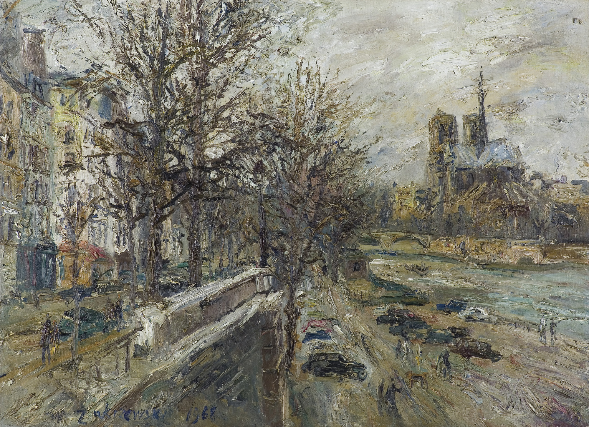 Włodzimierz Zakrzewski (Petersburg 1916 - Warszawa 1992) naukę rysunku i malarstwa rozpoczął już w latach gimnazjalnych. Następnie kształcił się w warszawskiej Szkole Sztuk Zdobniczych i Malarstwa pod kierunkiem E. Butrymowicza. W czasie II wojny światowej przebywał w Związku Radzieckim - w latach 1941-1942 uczył się w Moskwie, projektował plakaty i malował obrazy o tematyce wojennej. W roku 1943 wyjeżdżał na Ałtaj. Po wojnie wrócił do kraju; w latach 1950-1952 był profesorem warszawskiej Akademii Sztuk Pięknych. W latach następnych całkowicie poświęcił się malarstwu. Podczas częstych podróży - m.in. do Włoch, Francji, Stanów Zjednoczonych - malował pejzaże i weduty z wielu odwiedzanych miast. Wystawiał dużo, tak w kraju jak i za granicą - w Sofii, Budapeszcie, Dreźnie, Paryżu, Rzymie, Mediolanie - zbierając pochlebne recenzje krytyków. Po wystawie w Paryżu pisano o nim, m.in.: „malarz czuły na materię i barwę wystawia bezpretensjonalne płótna, zadumane, pełne wigoru w fakturze, świadczące o żywej reakcji na światło...“ (cyt. za katalogiem wystawy w warszawskiej Galerii ZPAP w roku 1963).