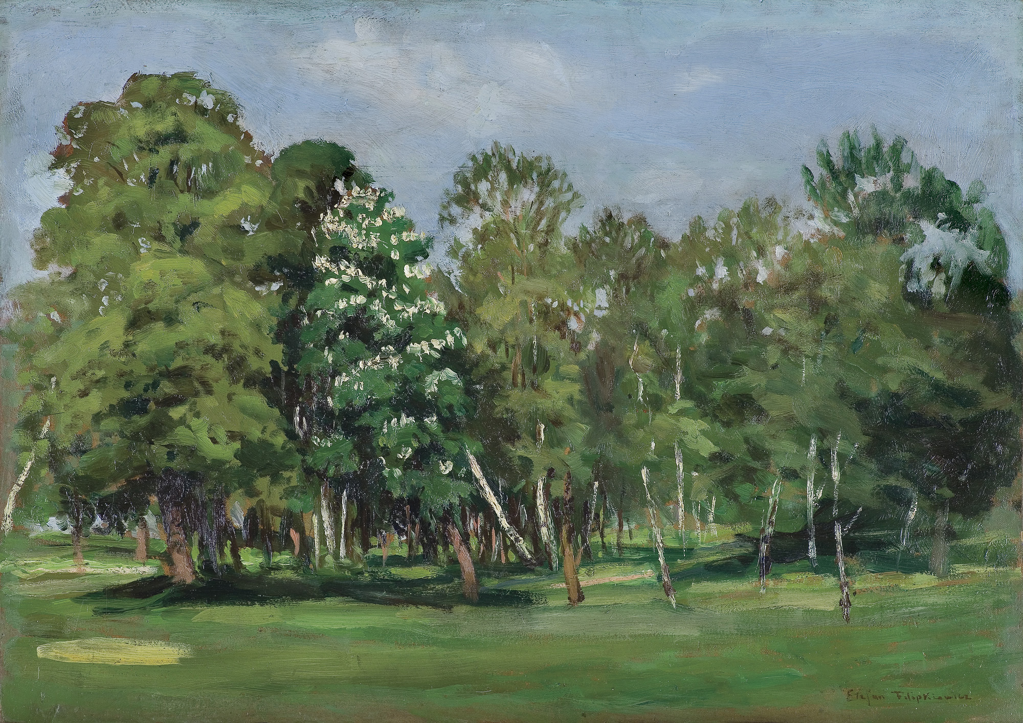 Stefan Filipkiewicz (Tarnów 1879 - obóz koncentracyjny w Mauthausen-Gusen 1944) - malarz i grafik, pejzażysta; w latach 1900-1908 studiował w krakowskiej Akademii Sztuk Pięknych u Józefa Mehoffera, Leona Wyczółkowskiego, Józefa Pankiewicza i Jana Stanisławskiego. Już w czasie studiów brał udział w wystawach krakowskiego TPSP, później uczestniczył w wielu wystawach krajowych i zagranicznych. Był przede wszystkim pejzażystą, uznawanym za jednego z najwybitniejszych uczniów Stanisławskiego i jego szkoły pejzażu. Malował krajobrazy tatrzańskie i podhalańskie, pejzaże z podkrakowskiego Radziszowa, gdzie spędzał wakacje, a w latach późniejszych także widoki nadmorskie. Malował również dekoracyjne martwe natury z bukietami kwiatów. Zajmował się grafiką, ilustracją, projektowaniem plakatów i medali. Od roku 1908 był członkiem Towarzystwa Artystów Polskich „Sztuka”. W latach 1913-1914 prowadził kurs malarstwa dekoracyjnego w Szkole Przemysłowej w Krakowie, od 1930 wykładał w ASP w Krakowie, a od 1937 był profesorem tej uczelni. Uczestnik wielu wystaw; w 1929 roku otrzymał złoty medal na Powszechnej Wystawie Krajowej w Poznaniu, w 1933 roku nagrodę Polskiej Akademii Umiejętności za całokształt twórczości. W latach 1914-1917 służył w Legionach, w czasie drugiej wojny światowej działał w konspiracji. Był Sekretarzem Komitetu Obywatelskiego do Spraw Opieki nad Uchodźcami Polskimi na Węgrzech i Placówki w Budapeszcie - przedstawicielstwa Rządu Rzeczypospolitej Polskiej na uchodźstwie. Aresztowany przez gestapo, prawdopodobnie z końcem lipca 1944 został wywieziony do obozu w Mauthausen-Gusen, gdzie 23 sierpnia zginął zamordowany wraz z współpracownikami z konspiracji - Henrykiem Sławikiem, Edmundem Fietz-Fietowiczem, Kazimierzem Gurgulem i Andrzejem Pyszem.
