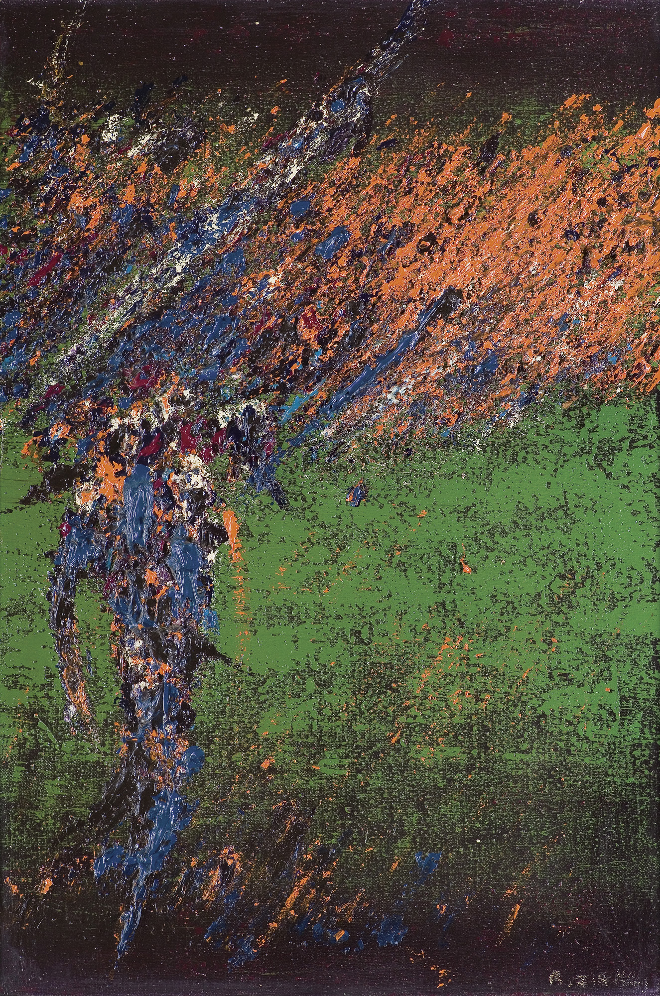 Rajmund Ziemski (Radom 1930 - Warszawa 2005) studiował malarstwo w latach 1949-1955 pod kierunkiem Artura Nachta-Samborskiego w Akademii Sztuk Pięknych w Warszawie. W roku dyplomowym wziął udział w Ogólnopolskiej Wystawie Młodej Plastyki w warszawskim Arsenale. Od 1958 wykłada w macierzystej uczelni, prowadząc w niej pracownię malarstwa, jedną z najchętniej wybieranych przez studentów jako pracownia dyplomowa. Prowadzący ją profesor jest również autorytetem artystycznym, jednym z najwybitniejszych przedstawicieli nurtu abstrakcji niegeometrycznej w polskim malarstwie powojennym. We wczesnym cyklu „Ptaki“ (1957-1958) operował kształtami bardzo uproszczonymi, malowanymi impasto na tłach zazwyczaj ciemnych, często o bogatej fakturze. Od początku lat 60. obrazy Ziemskiego przybrały charakterystyczny kształt wydłużonego prostokąta, w którego polu, niczym rozpięte, dramatyczne płachty, rozpościerały się aluzyjne pola koloru i faktury. Nosiły tytuły sugerujące związki z naturą, jednak górę w nich bierze zainteresowanie malarza kolorem i materią, traktowanymi autonomicznie, w oderwaniu od jakichkolwiek sugestii przedmiotowych. Te powróciły w znamiennym epizodzie z połowy lat 60., kiedy to artysta włączał w strukturę swych obrazów, często wtedy łączonych w Tryptyki, fotograficzne wizerunki twarzy ludzkich. Potem zarzucił ten proceder na rzecz dalszego rozwijania prób kolorystycznych, idących w kierunku ostrych kontrastów i niekiedy kakofonicznych zestawień. Pozostaje przy tym przy ustalonym jeszcze w latach 60. sposobie tytułowania i oznaczania prac (wielki, malowany do dziś cykl „Pejzaże“ z obrazami numerowanymi liczbą łamaną przez datę roczną).