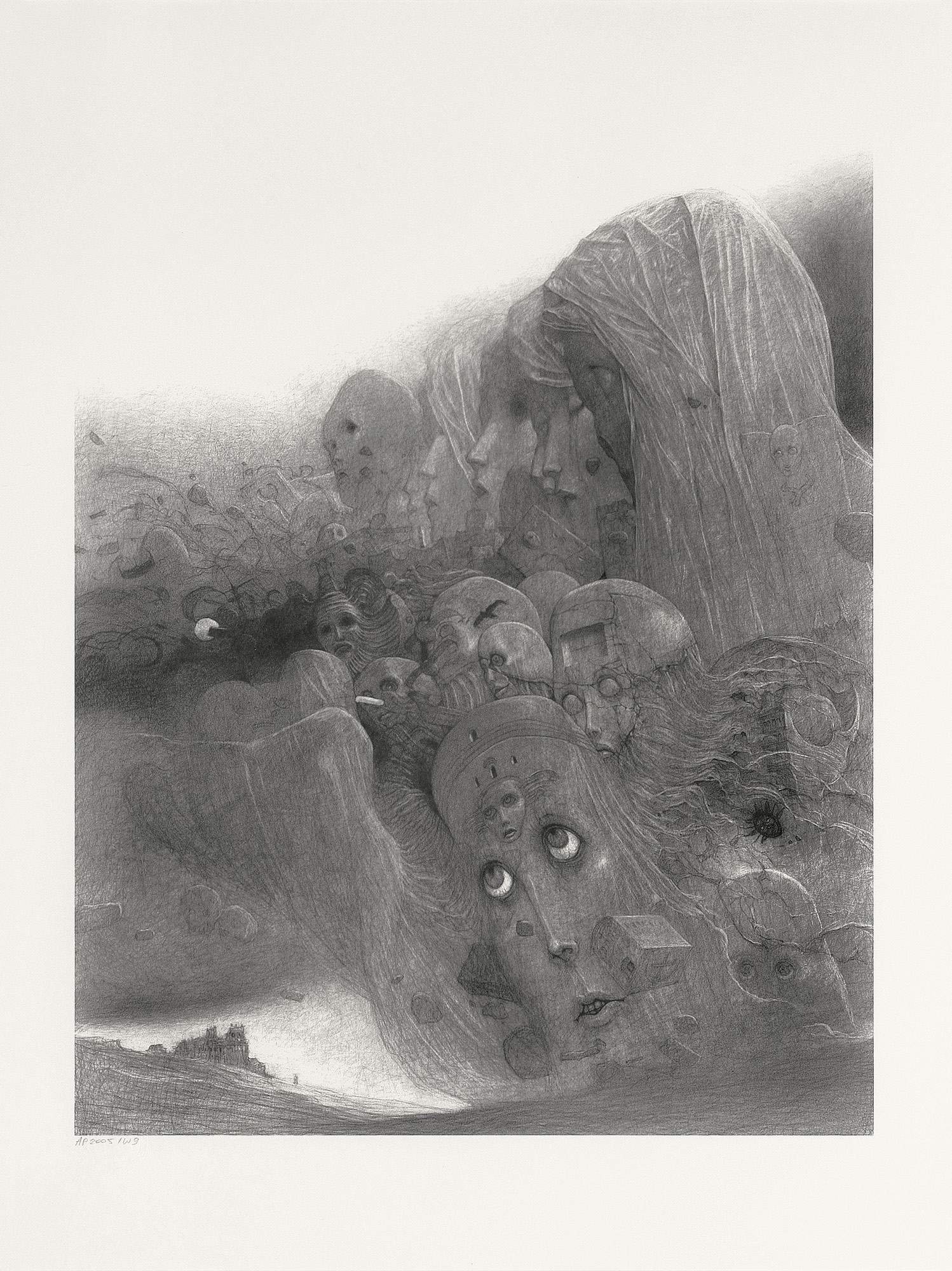Zdzisław Beksiński (Sanok 24 II 1929 - Warszawa 21 II 2005) studiował w latach 1947-1952 na Wydziale Architektury Politechniki Krakowskiej. Był artystą samoukiem, który osiągnął niekwestionowaną pozycję w polskiej sztuce współczesnej, potwierdzoną obecnością jego prac na prestiżowych wystawach i w kolekcjach muzealnych. Początkowo zajmował się fotografią, którą interesował się od lat studenckich, po 1956 zyskując uznanie jako twórca fotogramów o estetyce opartej o efekty fakturowe. W latach 1958-1962 tworzył abstrakcyjne obrazy-reliefy o bogatej fakturze, głównie metalowe, będące odmianą malarstwa materii. Pod koniec tego okresu powstawały ażurowe formy o kształtach figur i pełnoplastyczne rzeźby w metalu. Kolejnym etapem jego twórczości były lata 1962-1974, kiedy poświęcał się głównie rysunkowi. W latach 60. rysował piórkiem i tuszem figuralne kompozycje odznaczające się karykaturalną deformacją postaci. Od końca lat 60. tworzył rysunki węglem i kredkami, będące monochromatyczną odmianą jego równoległej twórczości malarskiej. Od 1974 zajmował się niemal niepodzielnie malarstwem. Jego charakterystyczny styl bazował na perfekcji technicznej, której towarzyszyła niezwykłość wizji. Malował świat po katastrofie, naznaczony piętnem śmierci i rozpadu. Jego obrazy zaludniają postaci i stwory o ludzkich wprawdzie bądź zwierzęcych kształtach, lecz o cechach fantomów, automatów lub rozpadających się trucheł. Artysta nie nadawał swym obrazom i rysunkom tytułów (poza porządkującymi symbolami), akcentując w ten sposób swój brak zainteresowania dla literackiej strony przedstawień. Sam mówił, że malując całkowicie poddaje się wizji, „fotografuje“ ją. W ostatnich latach włączył do swego warsztatu artystycznego elektroniczne techniki generowania obrazu, które wykorzystywał do tworzenia komputerowych fotomontaży. Sztuka Beksińskiego, wielokrotnie wystawiana i omawiana, budzi skrajne emocje wśród znawców i publiczności.