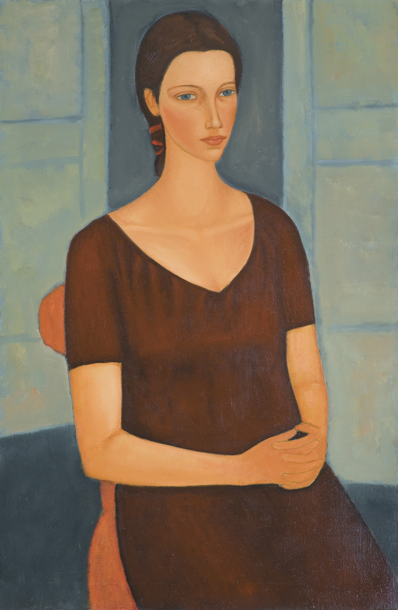 Roman Zakrzewski (Oświęcim 1955- Kraków 2014) ukończył krakowską ASP w 1985. Wystawiał swe prace w galeriach promujących sztukę tzw. realizmu magicznego, m.in. w Galerii Katarzyny Napiórkowskiej w Warszawie i w domach aukcyjnych. Artysta, inspirujący się ewidentnie sztuką Amadeo Modiglianiego i malarstwem epok gotyku i Quattrocenta, opracowuje na różne sposoby jeden temat – wizerunek siedzącej en face lub en trois quatre dziewczyny o wydłużonej sylwetce, ubranej w wąską suknię o dekoracyjnym wzorze. Przez okno w tle roztacza się widok na rozległy, ujęty z lotu ptaka pejzaż.