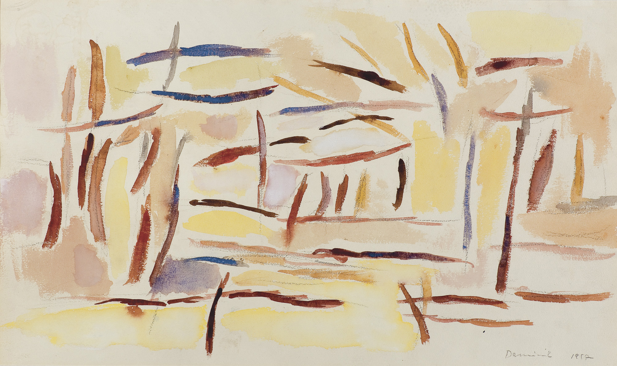 Tadeusz Dominik (Szymanów 14 I 1928 - Warszawa 20 V 2014) studiował na Wydziale Malarstwa ASP w Warszawie pod kierunkiem prof. J.Cybisa (1946-51, dyplom 1953). Od 1951 był pedagogiem na macierzystym Wydziale, początkowo jako asystent Cybisa. Od 1965 prowadził własną pracownię, w 1979 otrzymał tytuł profesora. W 1990 przeszedł na emeryturę. W czasie studiów oddziałały nań - za pośrednictwem osobowości i sztuki Cybisa - idee polskiego koloryzmu, które następnie twórczo i samodzielnie kontynuował. Początkowo tworzył obrazy figuratywne. Debiutował na słynnej wystawie w warszawskim Arsenale w 1955, gdzie zdobył nagrodę. W tym okresie obok malarstwa uprawiał drzeworyt, operujący szerokimi płaszczyznami bieli i czerni (drzeworyty wystawiał m.in. na Biennale w Wenecji w 1956). W drugiej poł. lat 50. zaczął malować obrazy abstrakcyjne, początkowo utrzymane w ekspresyjnej i spontanicznej stylistyce malarstwa informel. W latach 60. wzbogacił swe prace o efekty fakturowe. Niezmienną inspiracją była dla malarza natura, bogactwo i kolorystyka jej form. Pozostał jej wierny do dziś, poddając zmianom sam sposób malowania. Stopniowo rozjaśniał i wygładzał swe kompozycje, wprowadzając efekty dekoracyjne, jak rytmiczne powtórzenia form czy rodzaj malowanych „rastrów“, regularnie znaczących fragmenty kompozycji. Wśród wielu nagród otrzymał m.in. laur „Złotego Grona“ w Zielonej Górze w 1963, Grand Prix Festiwalu Polskiego Malarstwa Współczesnego w Szczecinie w 1968, nagrodę im. George’a Rowney’a w Londynie w 1973 i Nagrodę im. Jana Cybisa w Warszawie w 1973. Równolegle z malarstwem zajmował się gobelinem, ceramiką, również grafiką komputerową.