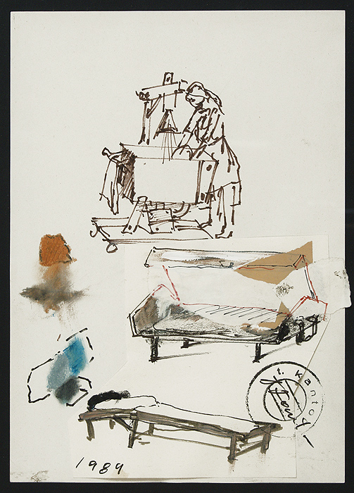 Tadeusz Kantor (Wielopole Skrzyńskie 1915 - Kraków 1990) studiował scenografię w ASP w Krakowie w latach 1934-1939. W 1942 założył Teatr Podziemny, który działał do 1944, dając dwa spektakle: "Balladynę" i "Powrót Odysa". W trakcie prac nad spektaklami zawiązało się grono artystów, którzy w 1945 utworzyli pod wodzą Kantora „Grupę Młodych Plastyków“. Ta z kolei stała się zalążkiem zarówno eksperymentalnego teatru Cricot 2 (utworzonego w 1955), jak i drugiej „Grupy Krakowskiej“ (utworzonej w 1957). W 1947 Kantor przebywał na rocznym stypendium w Paryżu, po powrocie był jednym z organizatorów I Wystawy Sztuki Nowoczesnej, Kraków 1948/49. W latach 1950-1954 nie uczestniczył w wystawach. Od 1955 jego twórczość biegła dwutorowo. Z jednej strony działał jako malarz, twórca „ambalaży“, od 1965 happeningów, z drugiej - poświęcał się pracy nad kolejnymi spektaklami Cricot 2, z których każdy był wydarzeniem artystycznym, zwłaszcza od lat 70.: "Umarła klasa" (premiera 1975), "Wielopole, Wielopole" (1980), "Niech sczezną artyści" (1985), "Nigdy tu już nie powrócę" (1988); zmarł po ostatniej próbie spektaklu "Dzisiaj są moje urodziny" (premiera 1991). Współpracował stale z galeriami: Krzysztofory w Krakowie (gdzie również miał siedzibę teatr Cricot 2) i Foksal w Warszawie. Od 1979 wraz z teatrem Cricot 2 przebywał głównie we Florencji. Był teoretykiem sztuki i teatru, autorem wielu manifestów. Uczestniczył w wystawach miedzynarodowych najwyższej rangi, jak Documenta w Kassel (1959, 1965), Biennale w Wenecji (1960), Biennale w Sao Paulo (1967). Otrzymał m.in. Prix Rembrandt Fundacji Goethego, Bazylea 1978, Medal „Arts et Lettres“ Ministra Kultury Francji 1982, nagrodę Fundacji im. Alfreda Jurzykowskiego, Nowy Jork 1982 i wiele nagród teatralnych.